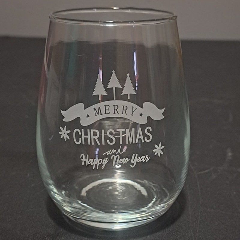 Set of 2 Holiday Merry Christmas & Happy New Year Stemless Wine Glasses. Great Gift Idea! Dishwasher Safe. New. Will ship fast and package with care including fragile stickers!