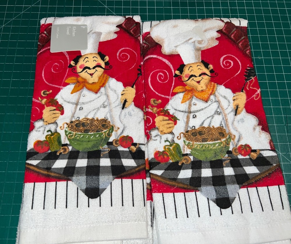Price is for the set of 2 NEW unwashed FULL 100% cotton terry cloth kitchen towels AND the price includes FREE shipping to 1 USA address! Each towel shows 100% cotton and is 15 x 25 each! We are downsizing and I used to crochet these towels and also made into kitchen boa hanging towels - they sold great since these chefs are so cute! Great colors of red, white and black! Shipping is included in this listing - ships to 1 USA address per order. PLEASE DO NOT pay for the items individually - WAIT to pay for all items together to save you time & money! Once payment is received & clears Ebay & please make sure that the USA mailing address is correct on the payment, we will ship US Postal Service or for larger orders, we also use UPS for the best rate shipping. NOTE that the shipping is only good for the initial mailing. If the address is incorrect on your payment & the package is returned to us, you will be charged shipping again so that we can remail - this is why it is IMPORTANT that you make sure that your shipping address is correct on your payment! If your order had free shipping, then you will be charged a 2nd shipping fee as well - again this is why it is important to review your payment BEFORE you complete it.. NOTE that the date on EBay is an ESTIMATED delivery date AFTER the payment clears Ebay. This is ONLY an estimate so please do not expect the package to arrive exactly on this date since once we mail the package we cannot control the time that it takes for USPS to deliver the package. Please be FAIR on your feedback since once we mail the package (you will get a tracking number & a message notice showing we mailed the package & the date) we cannot control the actual delivery date. Return policy - In order to comply with Ebay power seller guidelines, we are forced to accept returns for Ebay BUT please understand that any item that has been washed, cut or around smoke, vapor or pets will not get a full refund once the return is received at our location. This is due to the fact that we sell new - unwashed - smoke free - pet free items & once it is altered, washed or around smoke or pets, it is no longer sellable. Shipping for the original package is non-refundable - if your item had free shipping, the actual cost of shipping your order will be deducted from any refund. NOTE that any return on special listings or custom orders will be charged a 10% return fee! Please note that we include a packing slip with EVERY order that includes the order details like item, qty, our Ebay shop name and contact information. This helps prevent lost packages by the carrier in case where the label is removed from the outside of the package. Thanks for shopping pmscrafts74 – we appreciate your business & look forward to hearing from you!