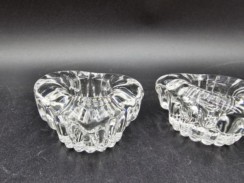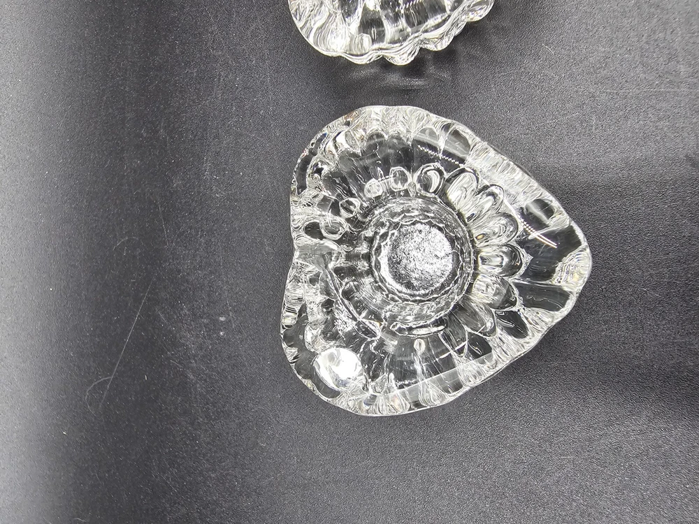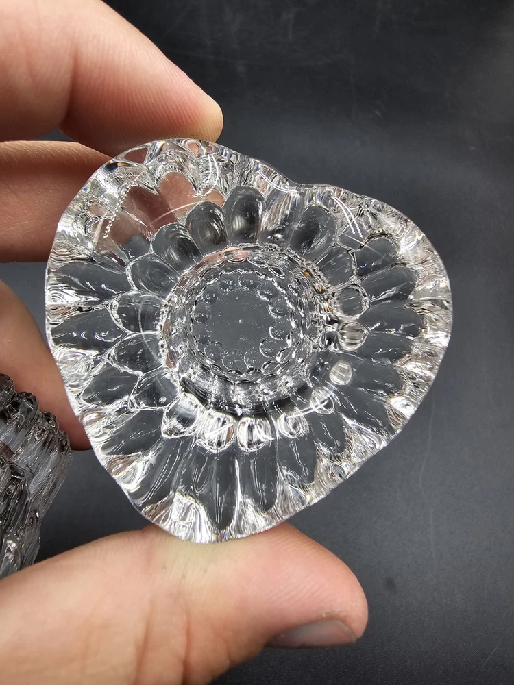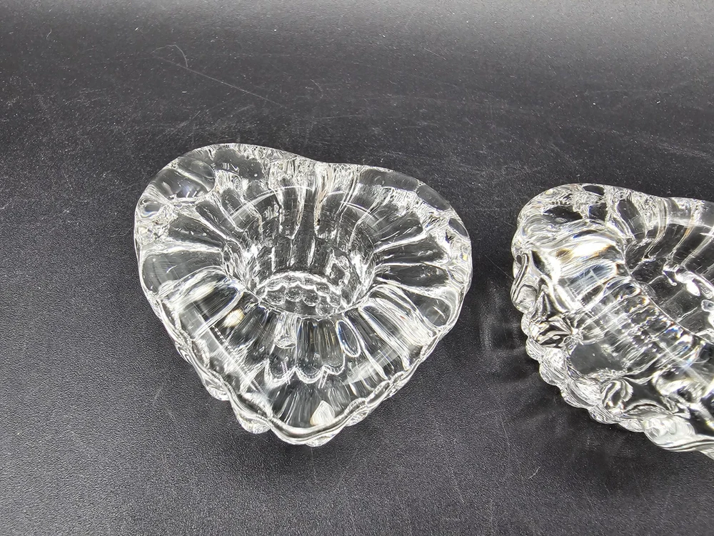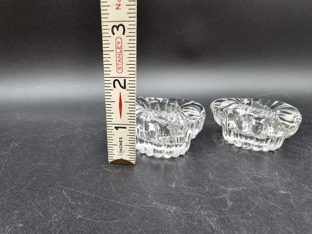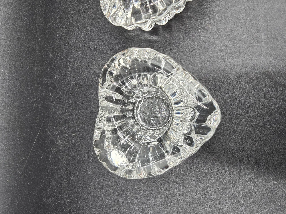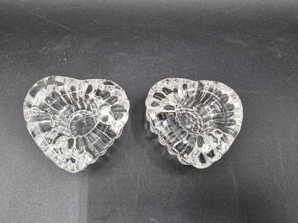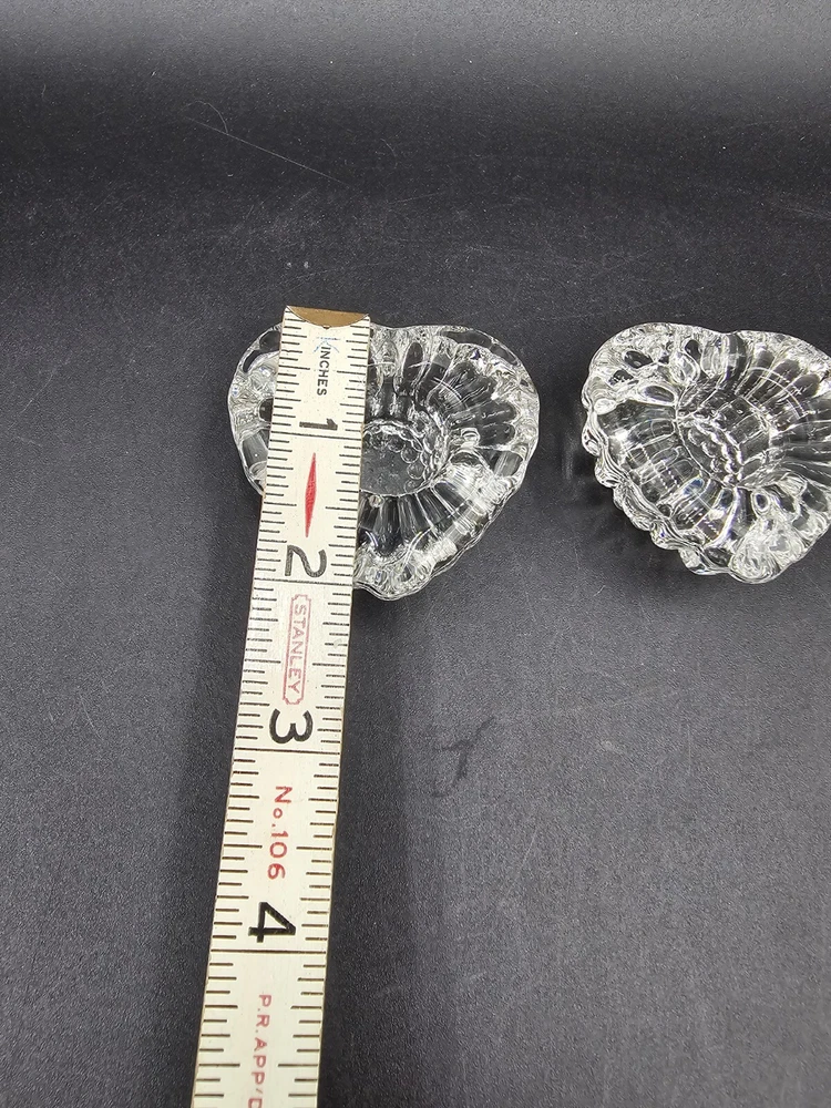 Set of 2 Mini Taper Crystal Candle Stick Holders Clear Hearts No chips or cracks, gently pre owned