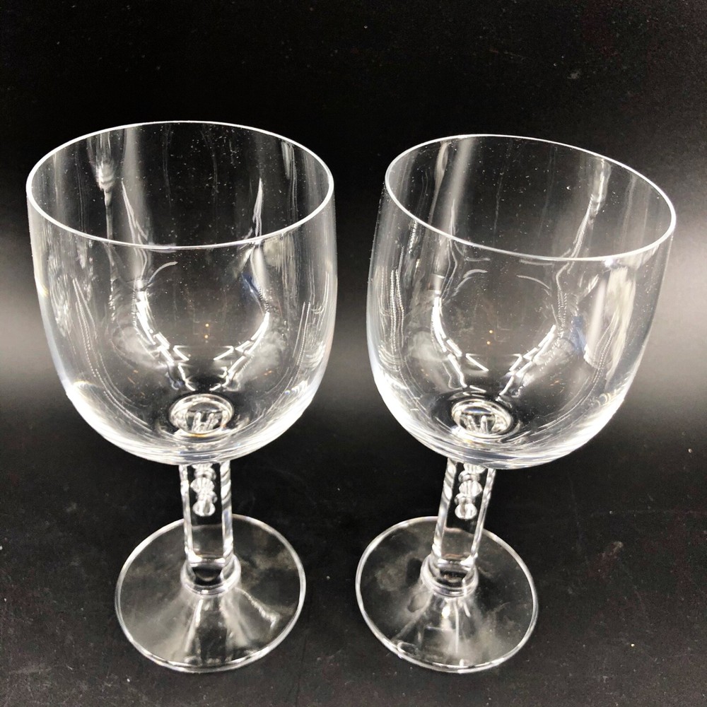 Set of 2 Wine Glasses w/ Contemporary Stem Three Center Holes in Design Stemware