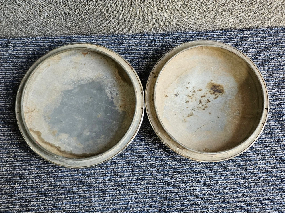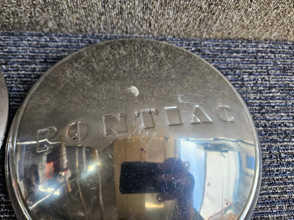 Set of 2 Pontiac Dog Dish Hubcaps Chrome 9.5in, Embossed Logo 1940s