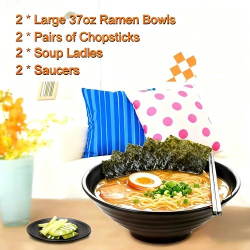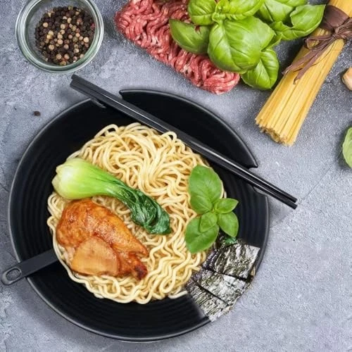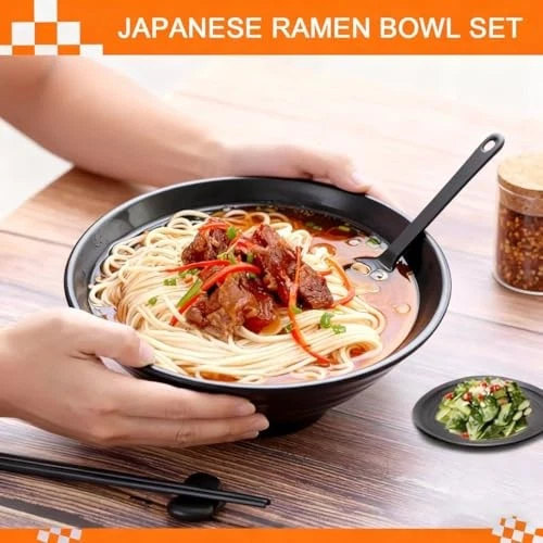 Return Policy Fast Delivery Trusted seller (Set of 2) Unbreakable Japanese Style Ramen Bowl with Chopsticks Spoon & Dipping Bowl Saucers, Large Black Matte Melamine Bowls for Pho Thai Miso Udon Soup Noodles, Asian Food & Wonton Product Description COMPLETE RAMEN SET FOR TWO - Enjoy a traditional Asian dining experience instantly! This all-inclusive set comes with 2 large ramen bowls, 2 pairs of chopsticks, 2 spoons, and 2 side dish plates. Perfect for serving your favorite soups, noodles, pho, or rice dishes for a cozy meal at home. DURABLE & SHATTERPROOF MELAMINE - Crafted from 100% BPA-free melamine, these bowls are built to last. They are shatter-proof, chip-resistant, and scratch-proof, making them ideal for daily use, outdoor picnics, or homes with children. A safe and sturdy alternative to fragile ceramic. STYLISH JAPANESE AESTHETICS - Designed with a sleek, black finish and minimalist Japanese inspiration, this set adds a touch of modern elegance to your table. Perfect for enhancing your kitchen, dining room, or even as a stylish accessory for your Airbnb or dorm. DISHWASHER SAFE & EASY CLEAN - Cleanup is a breeze! The entire set is top-rack dishwasher safe for effortless maintenance. Their lightweight and resilient material ensures they won’t break or fade over time—unlike traditional porcelain or ceramic bowls. SATISFACTION GUARANTEED - We stand behind the quality of our products. If you’re not completely happy with your Japanese ramen set, contact our 24/7 support team for a quick solution. Order with confidence today! Shipping Returns Payment Shipping Shipping is FREE to all addresses other than APO/PO boxes in the lower 48 states. All our stock ships from US-based warehouses. Shipped via USPS or UPS (depending on location and package weight) Unless stated otherwise, all orders will ship within 24-72 hours of your payment being processed. Check our feedback to see the great reviews of FAST shipping we offer. Returns Seller does not accept returns Payment We currently accept payment via eBay managed payments only. Once payment is cleared, we will dispatch your shipment within 1-3 business days. Please refer to the "Shipping" tab for more information regarding shipping speed to your destination.