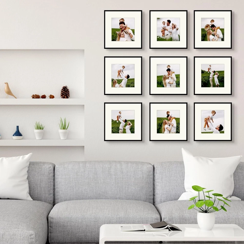 Set of 3 Black 12x12 Metal Picture Frames with Mat for Gallery Wall Elegance
