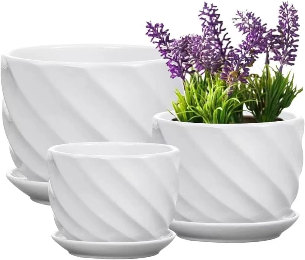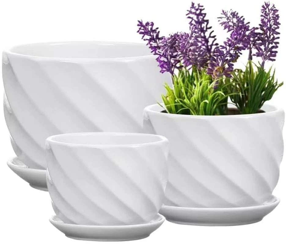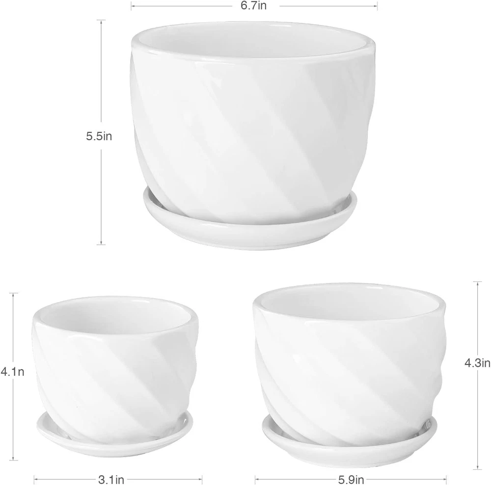 Store New Arrivals Add to Favorite View Feedback Contact Set of 3 Ceramic Plant Pot - Flower Plant Pots Indoor with Saucers,Small to Medium Sized round Modern Ceramic Garden Flower Pots (White) Description Planter Form Box Style Minimalist Number of Levels 1 Capacity 6.7 Cubic Feet Plant or Animal Product Type Plant Item Dimensions 6.7 x 6.7 x 5.5 inches Color White Pattern Solid Item Dimensions D x W x H 6.7"D x 6.7"W x 5.5"H Material Ceramic Material Type Ceramic Number of Pieces 3 Shape Round Indoor Outdoor Usage Indoor Mounting Type Tabletop Additional Features Drainage Hole Special Feature Drainage Hole Style Name Minimalist Included Components Saucer 3 packs,modern ceramic planters of different sizes,Large - 6.7D X 5. 5H,Medium- 5.9D X 4.3H ,Small - 3.1D X 4.1 H Drainage holes for watering and simplifies plant maintenance, make it easy to water your and prevent clogging,its attached to the pot so its easy to move and hold waters! Beautiful and stylish,minimalist-stylefor beautiful tabletop displays that brighten up your home,perfect for decorating a home office, kitchen, patio, or desk and more ! ceramic finish,looks clean and simple elegance,Use all 3 planters or use them separately is by your decision! Plant not included Product Description ABOUT US We offer the best prices around on high quality products. Our E-store includes media such as books, movies, music and games while offering electronics, toys, sporting apparel, clothing, tools, general home, garden items and more. SHIPPING We are always working hard to ensure your package arrives as soon as possible. Please understand that some factors like weather, high postal traffic, and the performance of shipping companies are outside of our control. We offer free shipping to the lower 48 states and ship within 2 business days of payment, usually sooner. We do not accept P.O. Boxes. Please provide a physical address. RETURNS We offer a 30-Day Return Policy on items which you are not completely satisfied with. You have the option for a full-refund or an exchange of the item. No returns are available on items shipped outside of the USA. PAYMENT We accept PayPal. CONTACT US This page content is yet to come Please ad us to your favorite seller and visit again later Thank You CUSTOMER SATISFACTION We try our very best to make sure every customer is completely satisfied. If there's a problem, message us! We're happy to help.