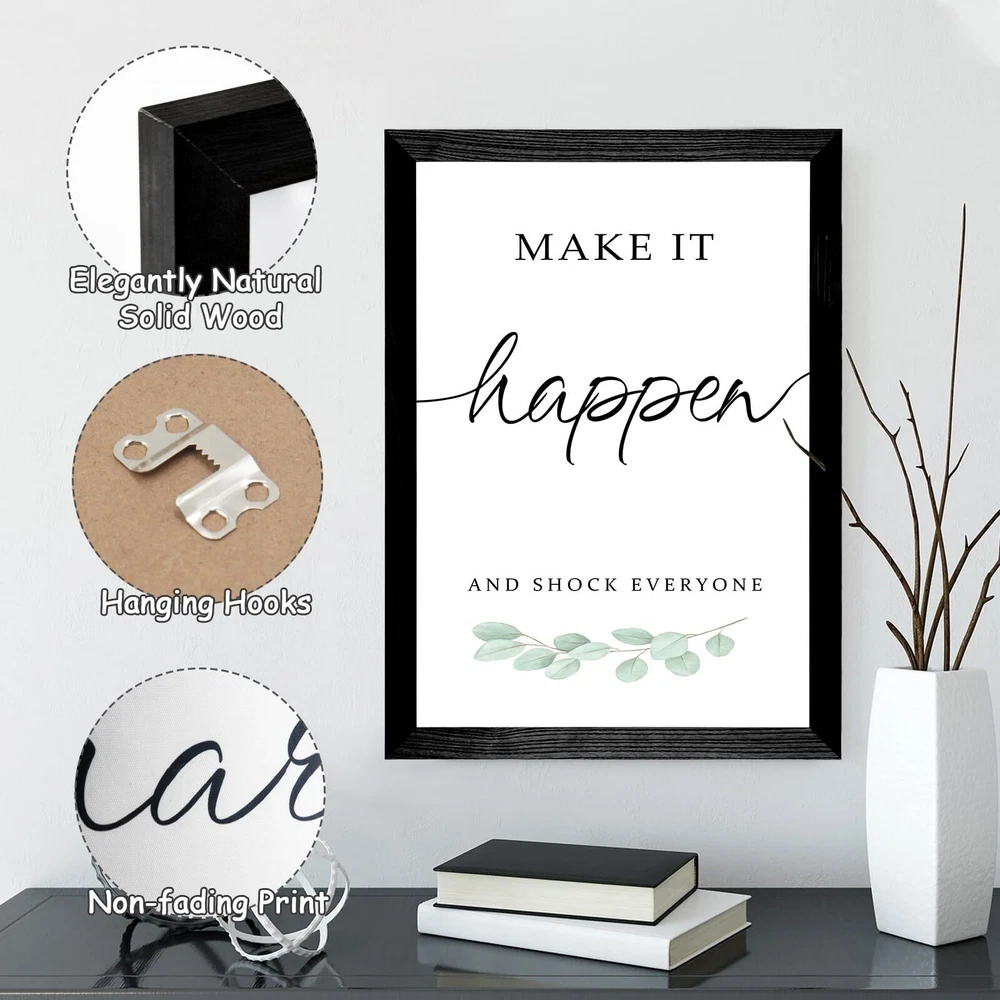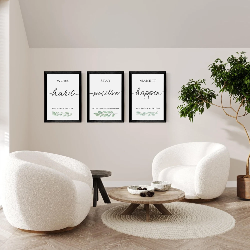 1 【FRAMED INSPIRATIONAL WALL ART】Set of 3 motivational framed wall art decor for bedroom conbined green botanical and motivational quotes,which remind you to keep a positive mindset and enhance self-confidence,bright colors gives your room an instant make-over and will be the perfect decorations for your bedroom and office. 【PERFECT DESIGN】The inspirational quote artwork wall decor for office contains 3 motivational wall slogans. Read them every day when you wake up,they will bring you full motivation throughout the day. 【HIGH QUALITY】You will get a set of 3pcs inspiring wall art with size 12"x16" to promote your taste in daily life,high quality wooden frame with canvas, printed clearly without fading, lightweight, wear-resistant and tear resistant, suitable for long-term use. 【EASY TO HANG】The inspirational signs over bed wall art decor for bedroom can be hanging easily, the hook is on the back of each framed,which you just need to put your favorite painting in the frame and hang it on the wall.The inspirational wall art is perfect for office,living room,home office, bedroom, classroom etc. 【WONDERFUL GIFT】These positive quotes above bed wall decor must be the perfect choice as a housewarming gift, Christmas gift, New Year gift, birthday gift, Valentine's Day gift, Thanksgiving gift to your family and friends,the special and meaningful inspirational wall art gifts will leave a deep impression on them definitely.
