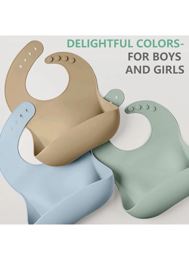 Set of 3 Silicone Bibs for Babies/Toddlers, Soft, adjustable for baby girls/boys. Condition is New. Shipped with Standard Shipping.