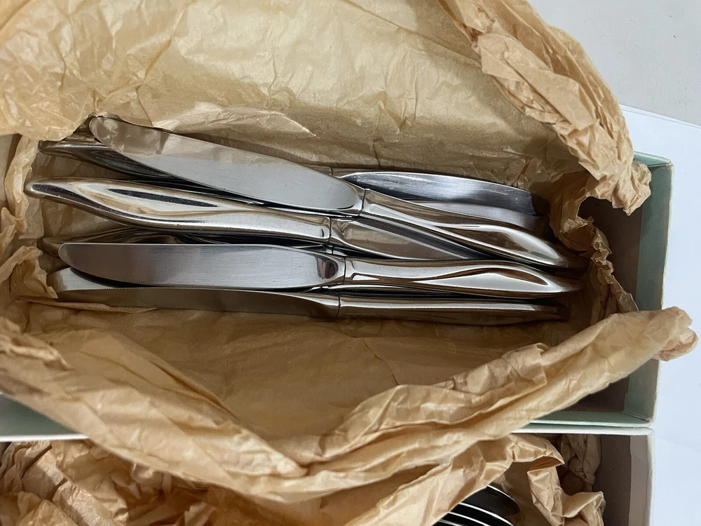 Enhance your dining experience with this stylish set of 35 Reed & Barton EVENING MOOD Stainless Flatware. Crafted from high-quality stainless steel, this set includes 3 iced tea spoons and 1 sugar spoon, making it perfect for serving guests. The solid handle pattern and glossy finish add a touch of elegance to any table setting. Ideal for adults and suitable for use in any kitchen or dining room, this set of flatware is perfect for everyday use or special occasions. It comes in a beautiful silver color and with the manufacturer color being silver, it is sure to match with any dinnerware. Upgrade your cutlery collection with this stunning set and enjoy your meals in style.