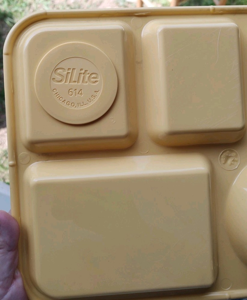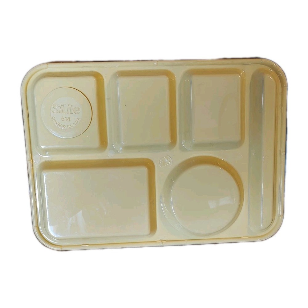 Style:CafeteriaItem Width:10 inCustom Bundle:NoNumber of Compartments:6Item Length:14 inMPN:NAFeatures:Dishwasher Safe, TrayTheme:SchoolBrand:SiLiteNumber of Items in Set:3Personalized:NoFinish:SmoothPattern:SolidSize:MediumMaterial:PlasticCountry/Region of Manufacture:United StatesColor:YellowShape:RectangleType:Cafeteria Tray
