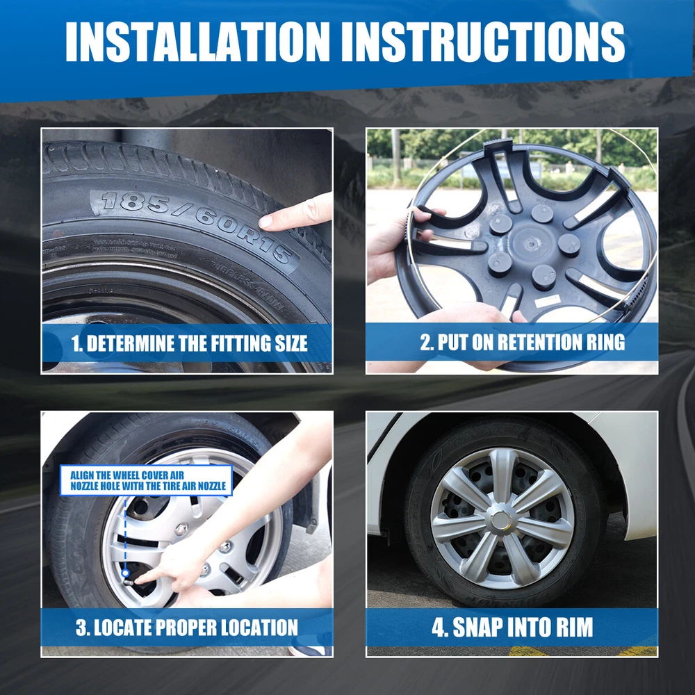 Set of 4 15'' Wheel Covers For R15 tires Rim Snap On Full Hub Caps USA 15 Inch Feature: π Please Ensure to Check your Tire/Wheel Size Before Purchase! Designed for (P15) 15" Stock Steel Wheels and will not fit over alloy wheels π For Replacement with Fast & Easy Snap-on Installation - Made from Premium ABS Material β Lab & Road Tested for Performance and Ultimate Durability π Adjustable Retention Rings assures Firm Grip Gives Support to the Hubcaps Making Sure They Stay in Place. Locate the Curve on the Retention Ring and Match to the Tire Air Valve to Install π Installation Instructions & Video Available - Please refer to the Video and images available as well as detailed instructions below for assistance π Wolfx Wheel covers fit most models of vehicle brands including Acura, Chevrolet, Dodge, Ford, Honda, Hyundai, Kia, Mazda, Mitsubishi, Nissan, Subaru, Toyota, Volkswagen and more Specification: Fits either LH (Driver Side) or RH (Passenger Side) Rear and Front Fits 15" Wheels Brand new Wheel Hubcap Cover Built to strict quality control standards Direct replacements Item Description: Type:Wheel Covers Color:as shown Fits 15" Wheels Material: ABS Package including: 4Γ Wheel Hubcap Cover Payment Delivery details Terms of sales About us Contact us Payment π We accept PayPal (Recommended), credit card, VISA, Google Pay & Discover etc. π Please submit your payment within 7 days after your purchase. π If not, eBay will automatically open an Unpaid Item Dispute on our behalf if the item(s) are not paid within 7 days. Delivery details π Please double check your delivery address and contact information. π All items will be shipped within 1 business days after payment received. π Tracking numbers will be easily accessible ASAP they are created and processed. Terms of sales π Free 30 days Return, we will cover the return post fee. π If a defective product was received, please do not hesitate to message us via eBay message. π We will response in 24 hours in business to resolve the problem π We stand behind our products. Items can be returned for exchange or full refund within 30 days from the date you receive. About us π Wolfstorm has a huge warehouse and office located in the United States. π All US domestic 48 states customers are able to benefit from the FREE SHIPPING services. π Our experienced, professional customer service representatives offers prompt and courteous service. π Best quality products, outstanding services and professional experience keep our customers. Contact us π Please feel free to contact us if you have any problems. π Emails will be replied within 24 hours in working days. π After hours emails will be replied on the next business day. On Dec 30, 2024 at 01:27:47 PST, seller added the following information: