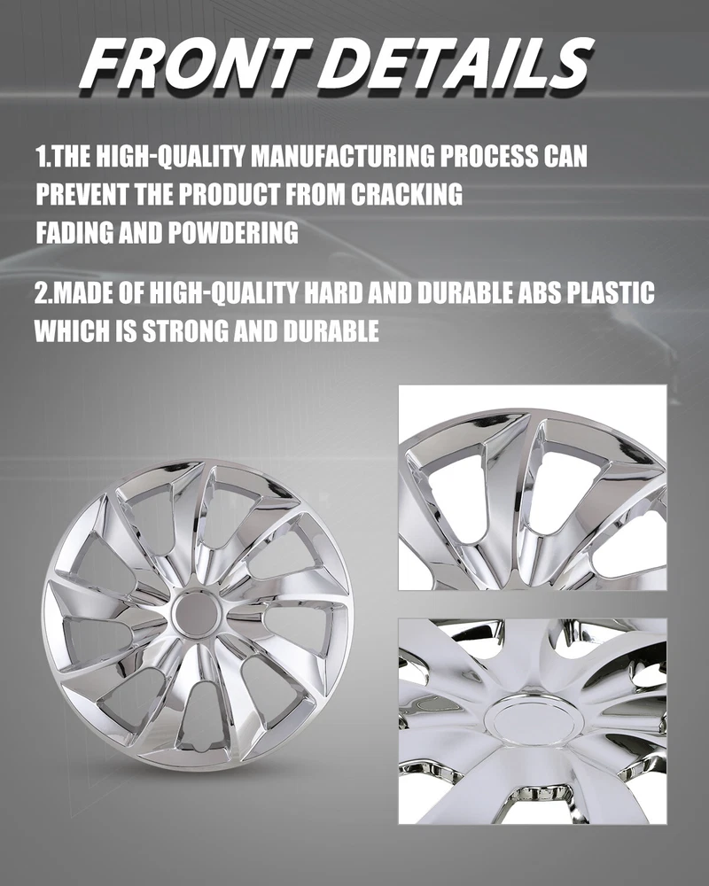 Home Payment Shipping Return Policy About Us Contact Us Feedback Title Other Car Refrigerator Front Bumper Rear Bumper Fender Flares Inner Fenders Side Steps Running Board A-Pillar Light Mount Brackets Headlights For Ford For Dodge For Chevrolet For Toyota For Mitsubishi Taillights For Chevrolet For Toyota For Ford For Jeep For Dodge For Honda For Nissan For Cadillac Fog Lights For Jeep For Dodge For Chrysler For Ford For Toyota For Chevrolet For Nissan For Lexus For GMC For Cadillac For BMW For Mercedes Benz LED Headlights For Ford For Dodge For Chevrolet For Toyota LED Taillights For Toyota For Chevrolet For Ford For Jeep For GMC For Honda For Cadillac LED Fog Lights For Toyota For Ford For Chevrolet For Mercedes Benz Jeep Headlights Tail Lights Fog Lights Refrigerator Bumper Fender Flares Inner Fenders A Pillar Light Mount Brackets Side Step More Chevrolet Headlights Tail Lights Fog Lights Refrigerator Bumper Ford Headlights Tail Lights Fog Lights Refrigerator Bumper Toyota Headlights Tail Lights Fog Lights Refrigerator Bumper Dodge Headlights Tail Lights Fog Lights Refrigerator Bumper GMC Headlights Tail Lights Fog Lights Refrigerator Bumper Item Features ❗❗ PERFECT FIT: This wheel hub cap is specifically designed to perfectly fit for 17-inch wheels, ensuring a seamless match and enhanced aesthetics. It complements the overall design of the vehicle, elevating its visual appeal. ❗❗ HIGH-QUALITY MATERIAL: Constructed from high-quality materials, this wheel hub cap guarantees durability and longevity. It withstands various road conditions and environmental factors encountered during daily driving, maintaining its pristine condition. ❗❗ EASY INSTALLATION: Installing this wheel hub cap is a breeze and requires no specialized tools or modifications. It comes with a user-friendly system, allowing for a hassle-free installation process by following the provided instructions. ❗❗ PROTECTIVE FUNCTION: Besides its aesthetic appeal, this wheel hub cap serves as a protective barrier for the wheels. It prevents scratches and potential damage caused by stones, debris, or other objects, safeguarding the wheel's surface. ❗❗ AFTER-SALES SERVICE: If There Is a Loss of Product Parts, or Any Parts of The Problem, We Can Provide After-Sales Service, Please Contact Us on The Order Page. Item Specification ❗❗ Type: Hub caps ❗❗ Number in Pack: 4 ❗❗ Color: Chrome ❗❗ Material: ABS ❗❗ Compatible Wheel Diameter: 17 in ❗❗ Finish: Glossy ❗❗ Installation Type: Snap-On ❗❗ Model: Universal Hubcap for Iron Wheels, Not fit for Chevy Equinox All Models, TOYOTA SIENNA 17 inch models, VOLKSWAGEN GOLF 17 inch models Not fit for 2010-2011 Fusion, 2013-2018 Toyota RAV4, 2010-2011 Mercury Milan, 2008-2012 Chevy Malibu, 2007-2010 Pontiac G6, 2007-2010 Saturn Aura, 2007-2010 Saturn Aura Hybrid, 2013-2020 DODGE JOURNEY, 2015-2020 DODGE GRAND CARAVAN, 2011-2016 CHRYSLER TOWN & COUNTRY. Item Package ❗❗ 1 Set of 4 Hub caps and 4 retention rings <img src="https://ti2.auctiva.com/web/aswCredit.gif" border="0"><br><a href="https://ebaybusinessbuilder.com/listing-tools/#ebay-only-listing-tools" target="_blank"><img src="https://ti2.auctiva.com/images/sc1line2.gif" border="0"></a> Payment Delivery details Terms of sales About us Contact us Payment We accept PayPal, credit card , Apple Pay & Google Pay etc. Delivery details All items will be shipped within 1-3 business days after payment received, we will try our best to ship out as soon as we can, hope for your understanding. Please double confirm your address and contact information, which will help the delivery faster and more accurately. Note :buyers who purchase international products need to pay import tariffs!!! Terms of sales Professional installation is highly recommended. Any problem of the item please feel free to contact us first , please D o Not leave negative feedback before that, or simply return it within 60 Days in original condition. We will resolve it for you ASAP. About us Any questions please do not hesitate to contact us directly by eBay message . We will reply you within 24 hours asap, thanks for your understanding. Contact us Should you have any problem or require any further information please feel free to contact us . If you are satisfied with our product and service, please kindly leave us a positive feedback. On Feb 8, 2025 at 01:15:50 PST, seller added the following information: