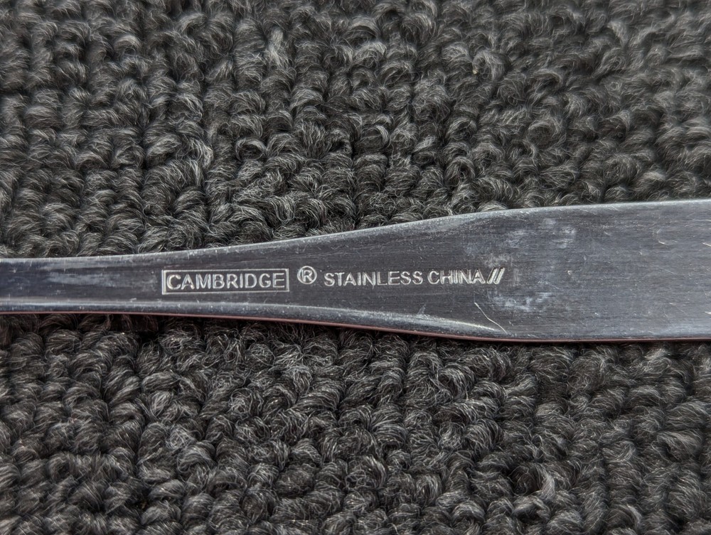 UPC:Does not applyMaterial:Stainless SteelBrand:CambridgeHandle Pattern:MadisonMPN:CBSMADColor:Silvergtin13:Does not applySet Includes:ForkStyle:ModernType:SetFinish:SatinHandle Material:Stainless SteelCountry/Region of Manufacture:ChinaItem Length:6 in