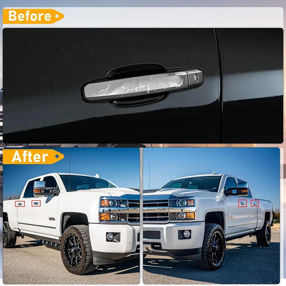 Set of 4 Chrome Exterior Door Handle For 2014-2017 Chevrolet Silverado 1500 Autoparts-Accs Introduction: Autoparts-Accs has been providing the quality products in automotive parts & accessories for years. Being a professional e-Bayer that provides you guys the greater shopping experiences is out mission. Product 100% Brand New Product, Quality Ensured, Provide You the Best Confident and Support! 60 Days Warranty, Money Back Guarantee, No Risk, No Hassle! Shipping Free Shipping. Handling time: 2 Business day. Item is shipped to ebay address.Leaving correct.address can minimize delay. Tracking information. will be sent once item is shipped. Contact We have a friendly and dedicated support teams to handle any problems you come up with our products. Please contact us first via email or message for replacement, refund or technical problem caused by any reason. Item Description: Autoparts-Accs Exterior Door Handle For 2014-2017 Chevrolet Silverado 1500 Set of 4 Chrome 👀 PERFECT FITMENT - Compatible with 2014-2018 Chevrolet silverado / GMC Sierra 1500 | 2015-2018 Chevrolet silverado 2500/3500 | 2015-2018 GMC Sierra 2500/3500. 👀 COOL LOOK - With advanced design,the chrome door handles, mirrors and tailgate covers assembly upgrade car exterior appearance with a new and different look, making it cool and catch all attention. 👀 EASY INSTALLATION - With double-side adhesive tape on the back, you can install in few minutes without any cutting or drilling. Just clean the installation point, tear off the adhesive tape, put it on your car, and press it for a minutes. NOTE: Please don't wash your car within 24 hours after you install it. 👀 HIGH QUALITY MATERIAL - Made of high density plastic with Double-sided adhesive tape on the back, the chevy silverado/gmc sierra chrome door handles, mirrors and tailgate covers assembly never fade and not easy to fall off. Item Features: Made to factory specifications for a hassle-free installation, guaranteed. Designed as a direct replacement for your original exterior door handle. Helps restore your vehicle to like-new condition. Constructed with durable materials for long service life. Eye-catching chrome finish matches your factory exterior door handle. Replacement brand exterior door handles are manufactured using the same processes as the original, ensuring excellent fitment and a quality finish. Lean manufacturing process keeps costs down and quality high. Every Replacement exterior door handle comes with a one-year unlimited mileage warranty for peace of mind. Item Specifications: 100% Brand New Warranty :90 Day Free Return:30 Day Type :Door Handle Placement on Vehicle :Front, Rear, Left and Right Color :Sliver Manufacturer Part Number :W1524C OE/OEM Part Number : 22923598, 22923594 Interchange Part Number :22923598, 22923594 Superseded Part Number :22923598, 22923594 Fits for: Chevrolet 2016-2022 Silverado 1500 Custom 2015-2018 Silverado 1500 LS 2015-2021 Silverado 1500 SSV 2022 Silverado 1500 ZR2 2014-2022 Silverado 1500 (submodel: High Country, LT, LTZ, WT) 2019-2022 Silverado 1500 (submodel: Custom Trail Boss, LT Trail Boss, RST) 2019 Silverado 1500 LD (submodel: Custom, LT, WT) 2020-2022 Silverado 2500 HD Custom 2015-2022 Silverado 2500 HD (submodel: High Country, LT, LTZ, WT) 2015-2022 Silverado 3500 HD (submodel: High Country, LT, LTZ, WT) 2015-2016 Suburban LTZ 2017-2018 Suburban Premier 2015-2018 Suburban (submodel: LS, LT) 2015-2016 Tahoe LTZ 2017-2018 Tahoe Premier 2015-2018 Tahoe (submodel: LS, LT, PPV, SSV) GMC 2014-2021 Sierra 1500 Base 2014-2022 Sierra 1500 (submodel: Denali, SLE, SLT) 2019-2022 Sierra 1500 (submodel: AT4, Elevation) 2022 Sierra 1500 (submodel: AT4X, Denali Ultimate, Pro) 2019 Sierra 1500 Limited Base 2019, 2022 Sierra 1500 Limited SLE 2022 Sierra 1500 Limited (submodel: AT4, Denali, Elevation, Pro, SLT) 2020-2022 Sierra 2500 HD AT4 2015-2021 Sierra 2500 HD Base 2022 Sierra 2500 HD Pro 2015-2022 Sierra 2500 HD (submodel: Denali, SLE, SLT) 2020-2022 Sierra 3500 HD AT4 2015-2021 Sierra 3500 HD Base 2022 Sierra 3500 HD Pro 2015-2022 Sierra 3500 HD (submodel: Denali, SLE, SLT) 2015-2018 Yukon (submodel: Denali, SLE, SLT) 2015-2018 Yukon XL (submodel: Denali, SLE, SLT) Please Double-Check that this is compatible with your vehicle. Packing List: 4 X Chrome Exterior Door Handle ( as shown in the picture ). NOTE: (1) Items would be shipped within 24 hours with cleared payment(Exclude Weekend and Holidays) (2) Items wont be shipped to Puerto Rico(Please check your address before placing an order!) (3) Please allow 1-3mm differs due to manual measurement. Due to the different display and different light, the picture may not reflect the actual color of the item (4)It would be highly appreciated if you might contact us first once you have any problems concerning the items. And you can expect all the issues would be resolved ASAP! Payment Delivery details Terms of sales About us Contact us Payment 1.Payment must be received within 7 days after winning the item,UPI (Unpaid Item Case) will be filed automatically if buyers fail to make the payment in 7 days after item ends. 2.If you have difficulty paying for the item, please email us to cancel the order Delivery details 1.Items will be sent out in 48 hours on payment received from Monday to Friday. Orders during weekends and holidays will be posted in the following working day. 2.Please make sure your shipping address and the order information is correct before placing an order. We will not be responsible for item loss due to wrong or unknown address. Terms of sales 1.We accept 30 days return/refund guarantee 2.If the item you received is faulty, damaged or incorrect, or any further problems, you can return it for replacement or refund, please contact our customer service on eBay within 30 days from item received. 3.For damaged items on arrival, please contact us immediately, sending us an email with a photo is preferred. We will offer solutions to such cases. Full refund or replac