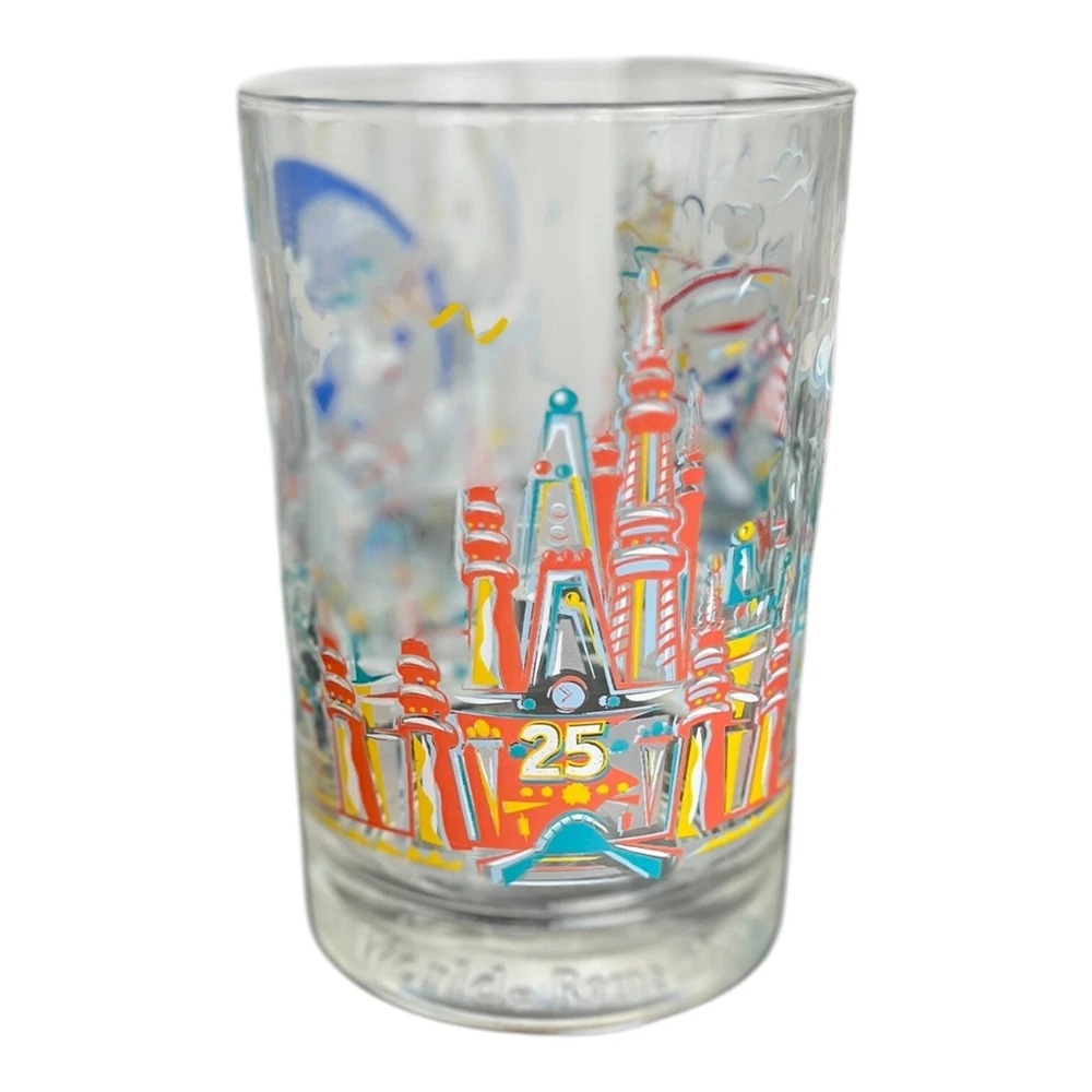 Enhance your Disneyana collection with this set of four glassware from McDonald's, featuring the iconic WDW 25th Anniversary logo. These glasses are a perfect addition for any fan of Disney and its franchises. The glasses were released in 1996 and are made of high-quality materials, ensuring their durability. The glasses are perfect for remembering the magic of Disney World while sipping your favorite beverage. They are an excellent gift for any Disney enthusiast, and their contemporary design makes them a valuable addition to any collection. Get your hands on these glasses and add a touch of Disney magic to your everyday life. No chips or cracks. One glass has some fading Mickey Mouse see photos.