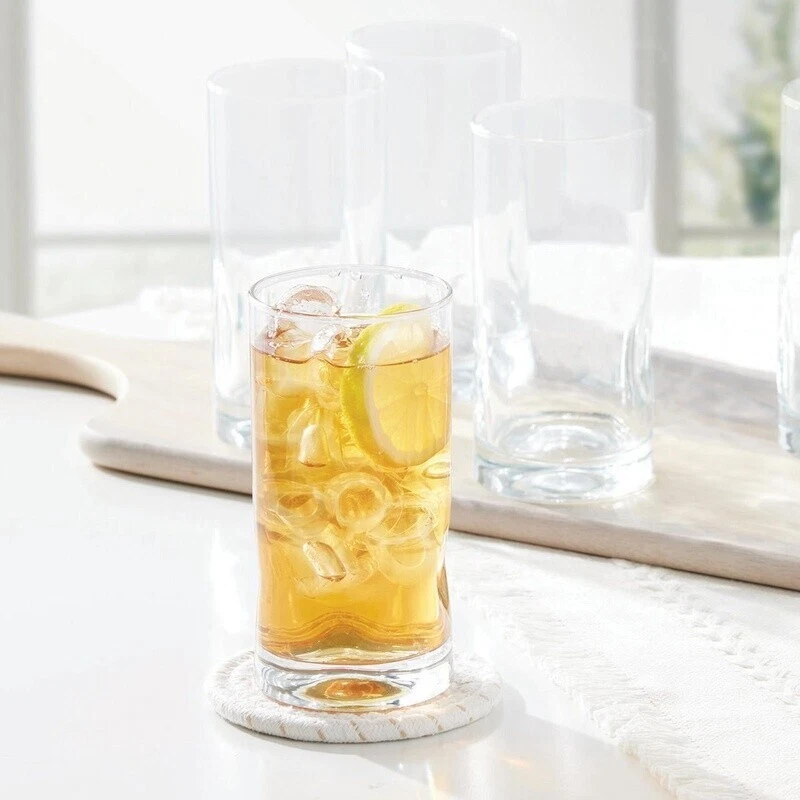 These glasses are fantastic! The clear design looks elegant, and they feel sturdy in hand. Perfect for juice, water, or cocktails—holds just the right amount. Dishwasher-safe makes cleanup a breeze. Great value for a set of four!