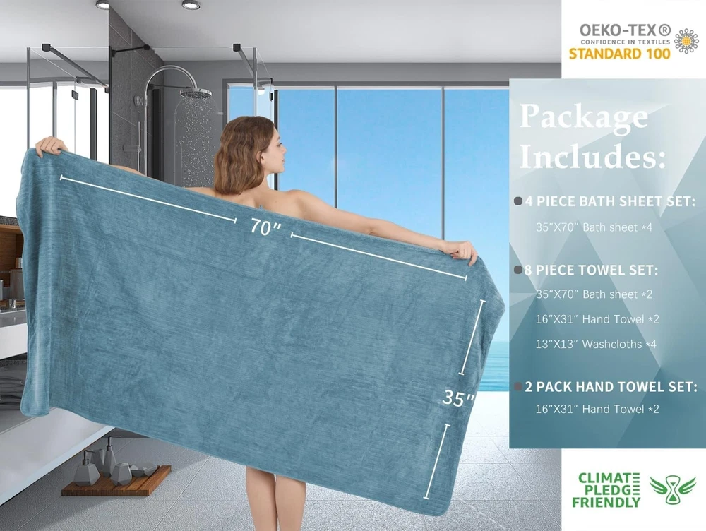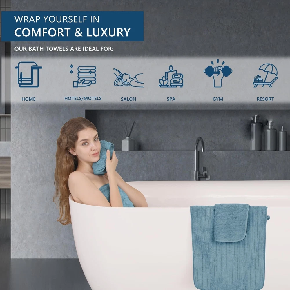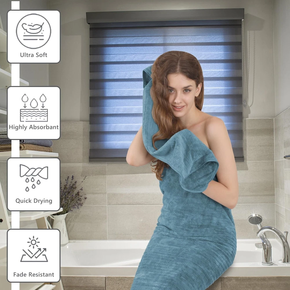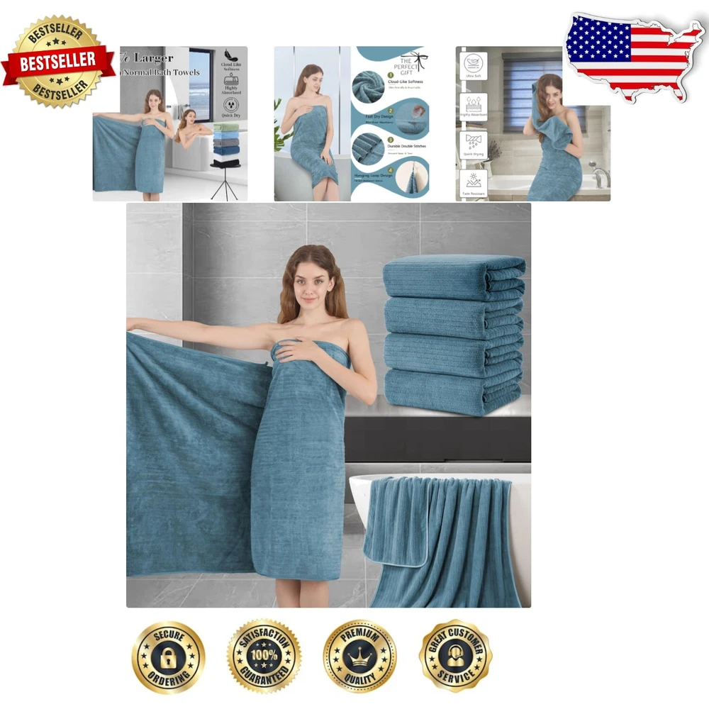Set of 4 Extra Large 35"x70" Ultra Soft Microfiber Bath Sheets in Turquoise ‹ › ‹ › ‹ › ‹ › ‹ › ‹ › ‹ › ‹ › ‹ › ‹ › ‹ › Set of 4 Extra Large 35"x70" Ultra Soft Microfiber Bath Sheets in Turquoise Indulge Yourself in Luxury Experience the ultimate in comfort and sophistication with our set of extra-large bath sheets, designed to envelop you in softness and absorbency. Features: Jumbo Oversized Bath Sheet: Each towel measures a generous 35x70 inches, providing ample coverage to wrap your body comfortably. Ultra Soft Material: Made from 100% microfiber with a plush 700 GSM, these towels are a joy to touch and feel. Superior Absorbency: Designed for maximum water absorption, our bath towels dry you quickly, leaving you comfortable and cozy. Lightweight Yet Durable: Engineered to be lightweight yet strong, these towels feature a reinforced hem to resist fraying and tearing. Easy Care: Machine washable for effortless upkeep, our towels are quick-drying and maintain their softness even after multiple washes. Benefits: Wrapping yourself in luxury after a shower will transform your daily routine into a spa-like experience. Perfectly versatile for home use, beach outings, gyms, and more, these towels cater to all your drying needs. Sensitive skin? Enjoy a gentle touch that won’t irritate, thanks to the premium looped cloth design. Save time and energy with quick-drying, highly absorbent fabric that feels soft and fluffy every time. Available in a stunning turquoise hue that enhances any bathroom aesthetic. Why choose our Extra Large Microfiber Bath Sheets? Elevate your bathing experience with our luxurious extra large bath sheets. Ideal for those who appreciate the finer things in life, our towels promise not only quality and durability but also a softness that caresses your skin. Whether you're rejuvenating after a long day or enveloping yourself in warm comfort post-bath, these towels provide an unparalleled luxurious touch. Indulge yourself in the comfort you deserve - order your set of 4 Extra Large Ultra Soft Microfiber Bath Sheets today and transform your daily routine into a lavish experience! Shipping Free & Fast Shipping - We offer free shipping to most of the USA with a normal delivery time of 3-7 days. However, due to the current situation, additional delivery time (up to 3 weeks) may be required for some items. Alternative Carriers - We may use alternative carriers (e.g. USPS, FedEx, UPS, etc.) to ensure your package arrives safely and on time. Due to the use of multiple carriers, we are unable to provide a tracking number automatically. Handling Time - Orders are processed and shipped within 1-2 business days of receiving cleared payment. Shipping Restrictions - Shipping to Alaska, Hawaii, Puerto Rico, Guam, and other US territories may incur shipping charges or delivery restrictions. Please contact us before ordering, or your order can be refunded/cancelled. State Restrictions - There may be restrictions based on your state of purchase. For example, certain items may not be shipped to California due to state regulations. Contact for Tracking Updates - If you require tracking updates or have any concerns about the delivery of your order, please feel free to contact us, and we will be happy to assist you. Return 30-Day Hassle-Free Returns - We want you to be completely satisfied with your purchase. If you are not, you can return the item within 30 days of receiving it for a full refund or exchange. Easy Return Process - To start a return, simply contact us and we will provide you with a prepaid return shipping label and detailed instructions. Restocking Fee - There are no restocking fees for returns. However, the buyer is responsible for return shipping costs if the return is not due to a seller's error. Refund Processing Time - Refunds will be processed within 5 business days of receiving the returned item in its original condition. Payment We accept all major credit cards, PayPal, and Apple Pay for your convenience. Your payment information is secure and encrypted to ensure a safe and seamless transaction. Please complete your payment within 3 days of purchase to avoid any delays in shipping. Feedback Your feedback is extremely important to us. We strive to provide the best products and customer service possible. If you are satisfied with your purchase, please take a moment to leave us a positive review. If you have any concerns or issues with your order, please contact us before leaving negative feedback. We are committed to resolving any problems and ensuring your satisfaction. Contact Us If you have any questions or concerns, please feel free to reach out to our customer support team. You can contact us through the eBay messaging system. We are available Monday to Friday, 9:00 am to 5:00 pm EST, and we will do our best to respond to your inquiry within 24 hours. Buy it now and enjoy a pleasant shopping experience! UPC: Not Set Item Thickness: Not specified Unit Quantity: 4 Material: Microfiber Set Includes: Bath Sheet Theme: Bathroom Room: Any Room,Bathroom Features: Soft,Highly Absorbent,Quick Dry,Lightweight,Durable,Shrink Resistant,Luxury,Fluffy Softness: Soft,Extra Soft Department: Adults,All Age Care Instructions: Do Not Iron,Do Not Tumble Dry,Dry Clean Only,Machine Wash Labels & Certifications: Not Set Type: Bath Sheet Brand: Unbranded Color: Turquoise Size: 35 in x 70 in Pattern: Striped Character Family: Not Set Country/Region of Manufacture: Not Set Item Length: Not Set Item Width: Not Set Shape: Rectangle Number of Items in Set: Four-Piece GSM (Grams per Square Meter): 700 GSM Product Line: Not Set Character: Not Set MPN: Not Set Unit Type: Not Set Personalize: Not Set