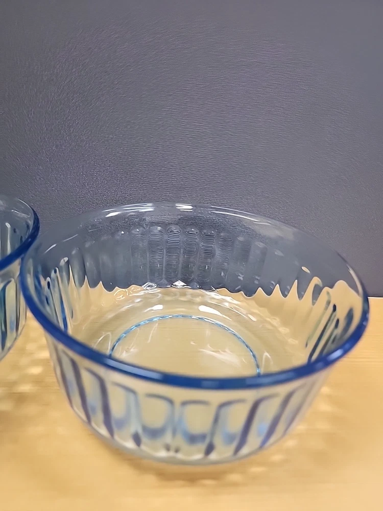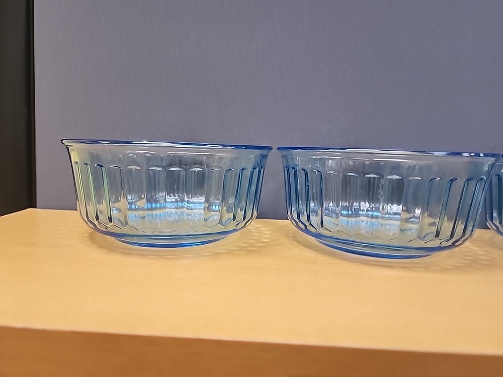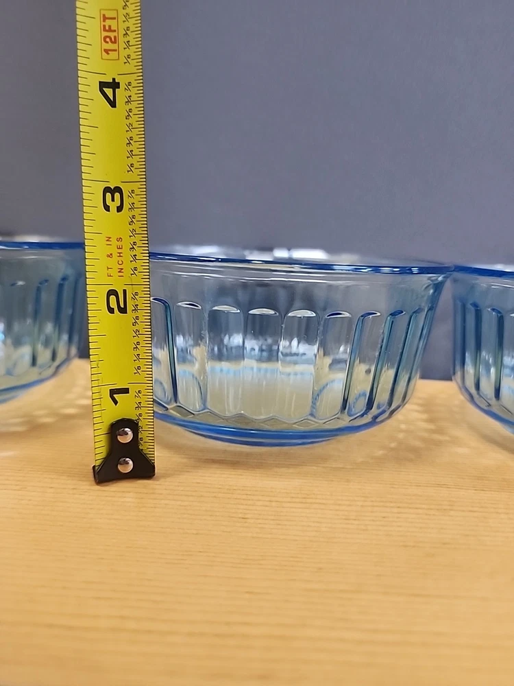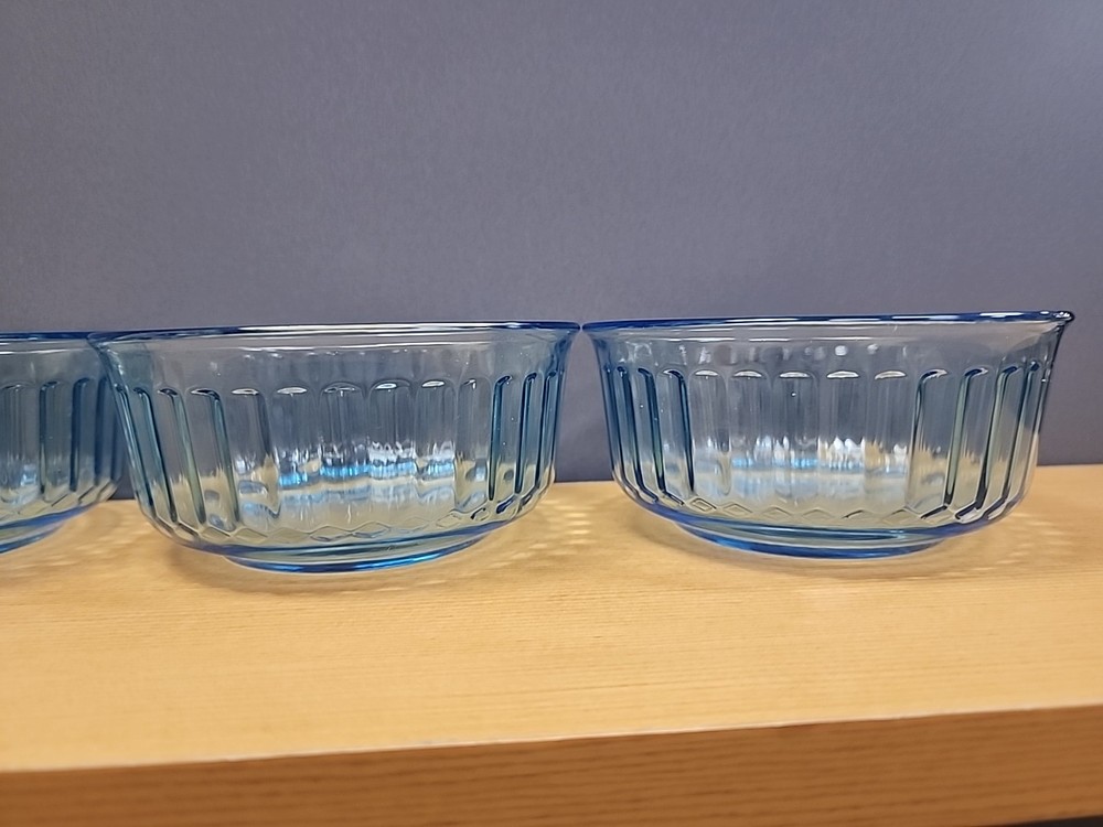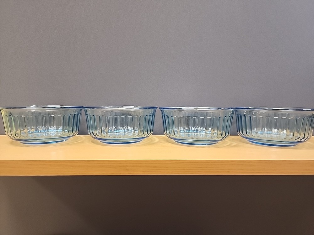 Set of 4 Fortecrisa Azure Ice Blue Glass Cereal Bowl 70s Interior Ribbed 5" Mex. Condition is Used. Shipped with USPS Ground Advantage.