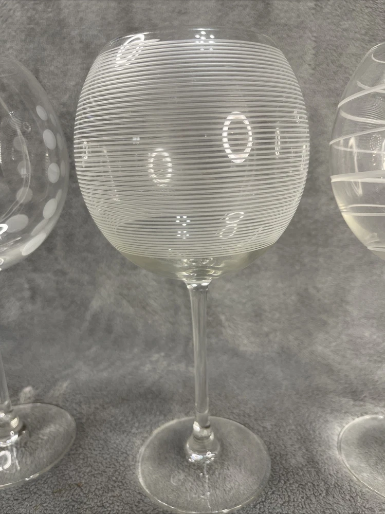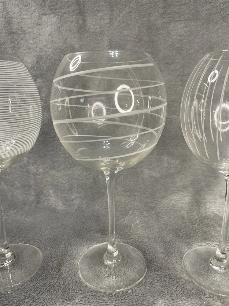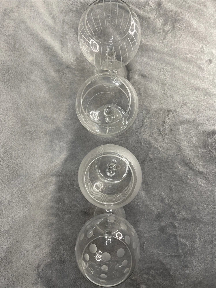 Elevate your drinking experience with these elegant Mikasa Cheers Balloon Wine Glasses. The set includes four glasses, each with a unique dotted, spiral, or lined pattern etched into the clear glass. With a height of 9 inches, these glasses are perfect for serving your favorite wine or cocktail. Crafted from high-quality glass material, this glassware set is a perfect addition to any kitchen or bar. Impress your guests with the stylish design and elevate your drinking experience with Mikasa Cheers Balloon Wine Glasses. This set also includes napkins to complete your sophisticated drinking experience.