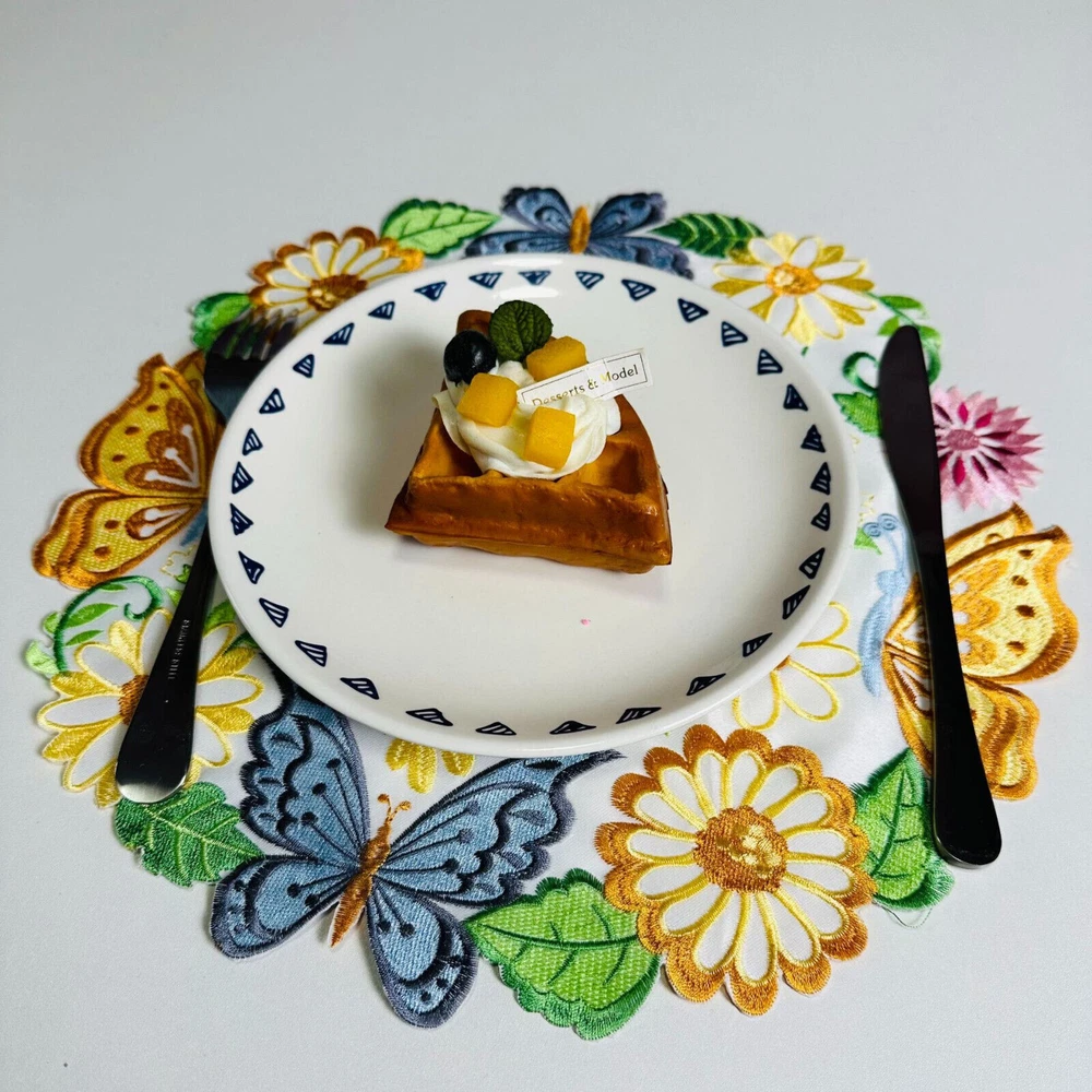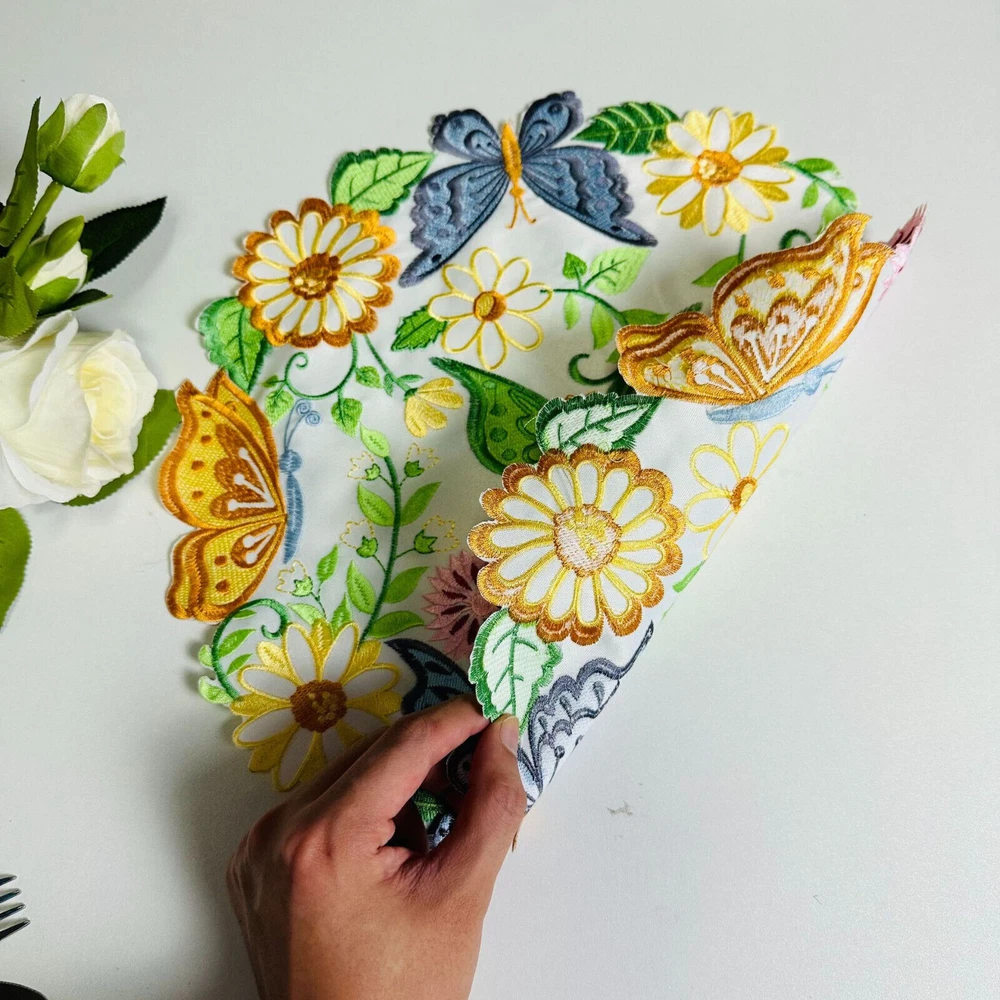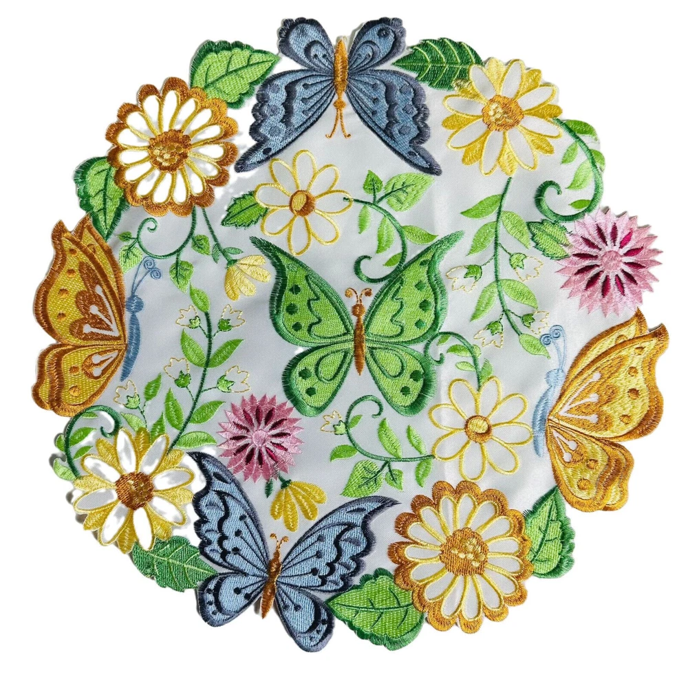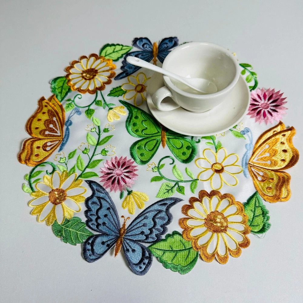 Brand: Unbranded Color: Multicolor Type: Placemat Set Material: 100% Polyester Country/Region of Manufacture: China Item Diameter: 35cm/14" Occasion: Anniversary, Apology, Baby Shower, Bar Mitzvah, Birthday, Christmas, Congratulations, Engagement, Funeral, Get Well, Good Luck, Halloween, International Women's Day, Labor Day, Mother's Day, Multipurpose, New Home, Party, Retirement, Romance, Surprise, Sympathy, Thank You, Valentine's Day, Wedding Shape: Round Features: Embroidered, Machine Washable, Stain Resistant Pattern: Floral Theme: Butterflies