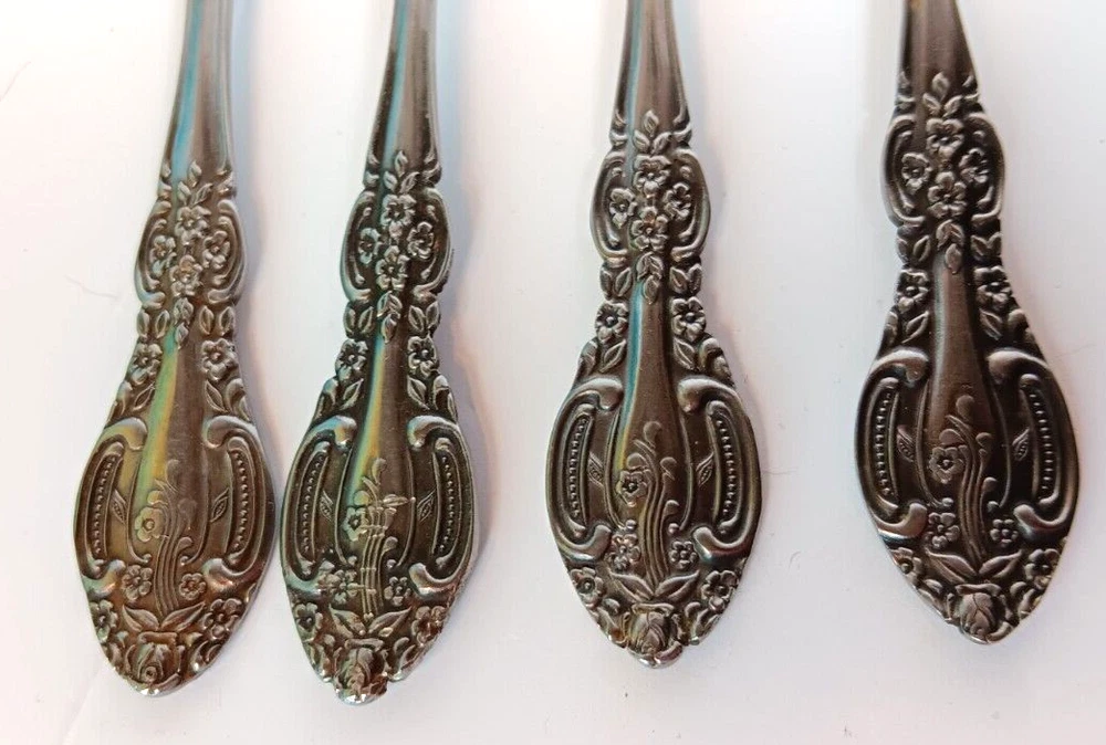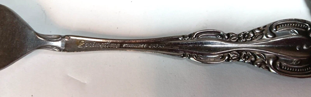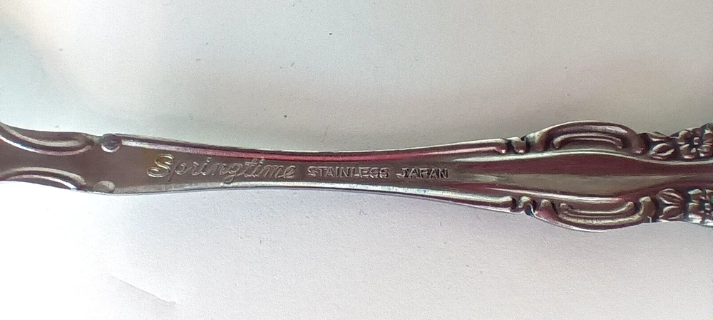 Set Includes: Salad Fork Handle Pattern: Floral Country/Region of Manufacture: Japan Type: Set of 4 UPC: NA Handle Material: Stainless Steel gtin13: NA Brand: Springtime Material: Stainless Steel Color: Silver