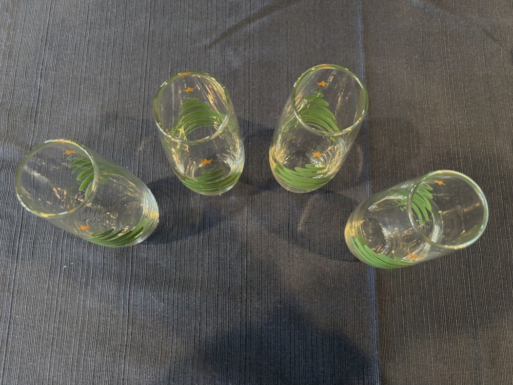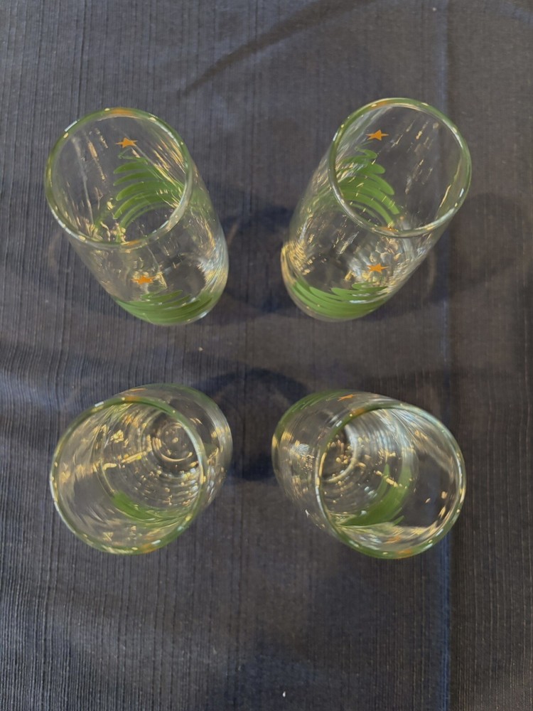 The product is a set of 4 contemporary stemless wine glasses designed for Christmas celebrations. The glasses feature a fluted shape and are made of clear glass, perfect for enjoying champagne during the holiday season. Each glass is adorned with a Christmas tree motif, adding a festive touch to your table setting. Ideal for serving drinks at Christmas gatherings, these stemless wine glasses combine modern style with a holiday theme for a cheerful and elegant touch to your celebrations.