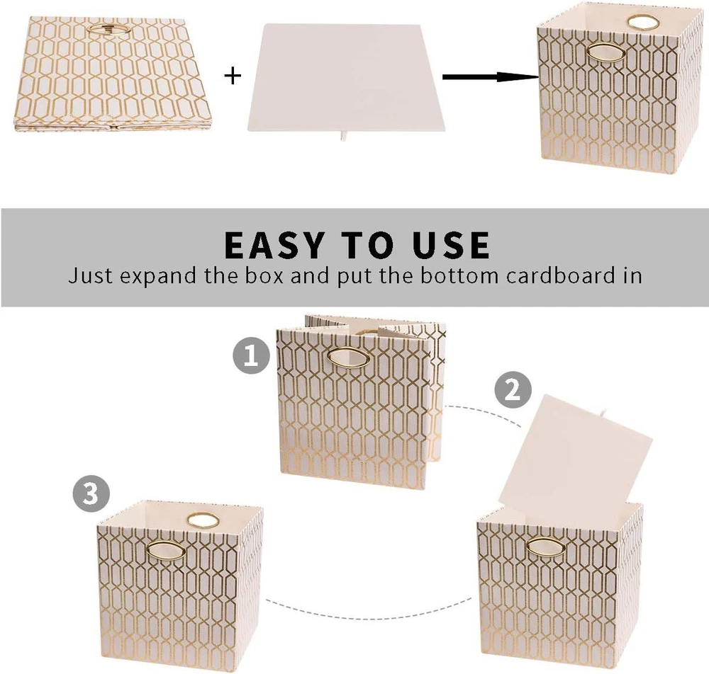 Set of 4 Stylish 13x13 Fabric Baskets in Cream/Gold - Easy Storage Solution ‹ › ‹ › ‹ › ‹ › ‹ › ‹ › ‹ › ‹ › ‹ › ‹ › ‹ › Set of 4 Stylish Fabric Baskets Dimensions: 13"x13"x13" (LxWxH) Color: Cream with Eye-catching Gold Pattern Product Features: Fashionable and functional storage solution; ideal for home organization. Unique oval metal handles allow for easy sliding in and out from shelves or closets. Stunning gold-painted patterns are sure to earn compliments and elevate your decor. Crafted from durable linen and environmentally friendly thick EVA material. Firm cardboard lining maintains the elegant shape of each basket. Sturdy construction holds up to 22 lbs (10 kg), surpassing typical storage bins. Collapsible design provides space-saving storage when not in use. 2- with dedicated customer support for quality assurance. Benefits: Enhances home organization while adding a touch of style to any room. Durable materials ensure longevity, making it a cost-effective choice. Easy to transport and store, making them perfect for multifaceted uses. Life-span outlasting other options on the market, ensuring your investment is protected. Why Choose Our Stylish Storage Baskets? Are you searching for an elegant yet practical solution for home organization? Our Set of 4 Stylish Fabric Baskets combines sophisticated design with outstanding functionality. With durable, high-quality materials and an eye-catching finish, these baskets will not only keep your space tidy but also enhance your home’s aesthetic. Don't settle for less—choose a storage solution that offers both beauty and durability. Enjoy effortless organization, and transform your living space today with our exquisite fabric baskets! Shipping Free & Fast Shipping - We offer free shipping to most of the USA with a normal delivery time of 3-7 days. However, due to the current situation, additional delivery time (up to 3 weeks) may be required for some items. Alternative Carriers - We may use alternative carriers (e.g. USPS, FedEx, UPS, etc.) to ensure your package arrives safely and on time. Due to the use of multiple carriers, we are unable to provide a tracking number automatically. Handling Time - Orders are processed and shipped within 1-2 business days of receiving cleared payment. Shipping Restrictions - Shipping to Alaska, Hawaii, Puerto Rico, Guam, and other US territories may incur shipping charges or delivery restrictions. Please contact us before ordering, or your order can be refunded/cancelled. State Restrictions - There may be restrictions based on your state of purchase. For example, certain items may not be shipped to California due to state regulations. Contact for Tracking Updates - If you require tracking updates or have any concerns about the delivery of your order, please feel free to contact us, and we will be happy to assist you. Return 30-Day Hassle-Free Returns - We want you to be completely satisfied with your purchase. If you are not, you can return the item within 30 days of receiving it for a full refund or exchange. Easy Return Process - To start a return, simply contact us and we will provide you with a prepaid return shipping label and detailed instructions. Restocking Fee - There are no restocking fees for returns. However, the buyer is responsible for return shipping costs if the return is not due to a seller's error. Refund Processing Time - Refunds will be processed within 5 business days of receiving the returned item in its condition. Payment We accept all major credit cards, PayPal, and Apple Pay for your convenience. Your payment information is secure and encrypted to ensure a safe and seamless transaction. Please complete your payment within 3 days of purchase to avoid any delays in shipping. Feedback Your feedback is extremely important to us. We strive to provide the best products and customer service possible. If you are satisfied with your purchase, please take a moment to leave us a positive review. If you have any concerns or issues with your order, please contact us before leaving negative feedback. We are committed to resolving any problems and ensuring your satisfaction. Contact Us If you have any questions or concerns, please feel free to out to our customer support team. You can contact us through the eBay messaging system. We are available Monday to Friday, 9:00 am to 5:00 pm EST, and we will do our best to respond to your inquiry within 24 hours. Buy it now and enjoy a pleasant shopping experience! Unit Quantity: 4 Material: Fabric,Linen,Ethylene Vinyl Acetate (EVA) Features: With Handles,Collapsible Mounting: Free Standing Item Height: 13 Inches Item Length: Storage Bins Item Width: Storage Bins Type: Storage Cube Item Weight: 3.61 kg Capacity: 81 - 120 Quarts Number of Items in Set: Four-Piece Item Depth: 13 in Number in Pack: 4 Number of Compartments: 1 Shape: Square Finish: Textured Style: Modern
