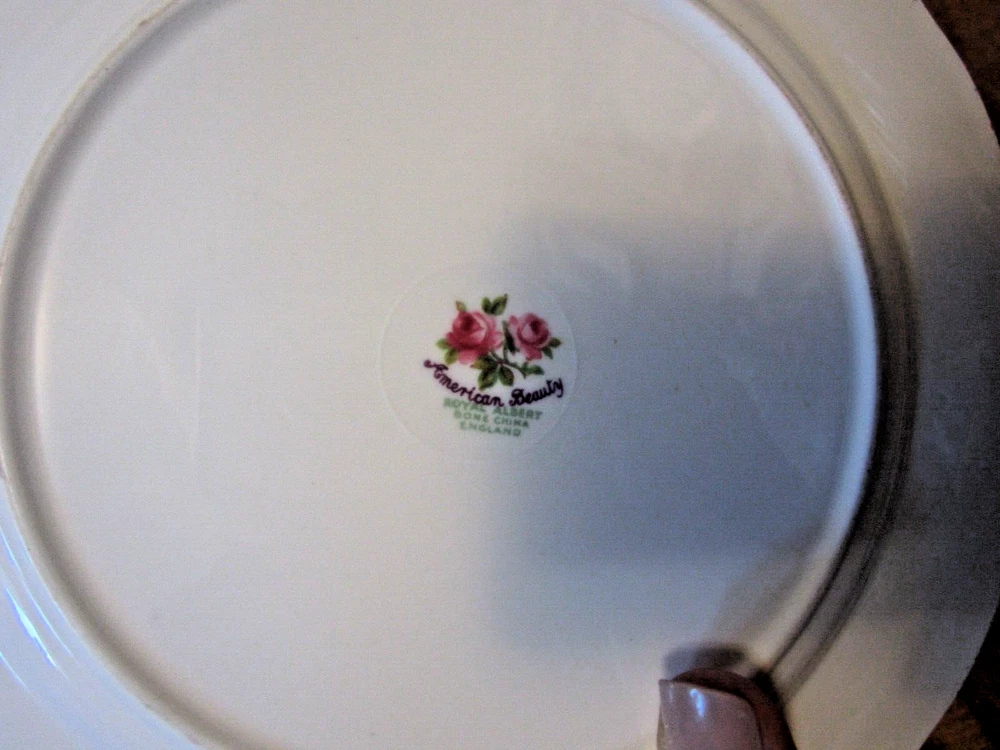 Enhance your dessert course with this exquisite set of 4 Royal Albert American Beauty dessert plates. Each 8-inch plate showcases a stunning display of roses, embodying the timeless elegance of mid-century design. Crafted from fine bone china, these plates originate from the United Kingdom and carry a printed backstamp authenticating their Royal Albert heritage. The set boasts a multicolored glazed finish, with a round shape that complements any table setting. Perfect for all occasions, these plates are not only functional but also serve as a decorative piece to cherish. Adhere to the hand wash only care instruction to maintain their beauty and ensure longevity.
