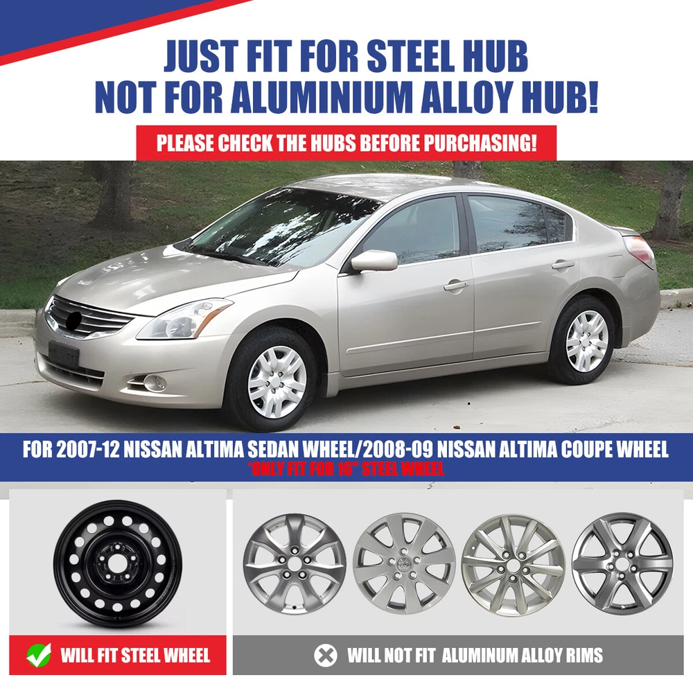Home Payment Shipping Return Policy About Us Contact Us Feedback Title Other Car Refrigerator Front Bumper Rear Bumper Fender Flares Inner Fenders Side Steps Running Board A-Pillar Light Mount Brackets Headlights For Ford For Dodge For Chevrolet For Toyota For Mitsubishi Taillights For Chevrolet For Toyota For Ford For Jeep For Dodge For Honda For Nissan For Cadillac Fog Lights For Jeep For Dodge For Chrysler For Ford For Toyota For Chevrolet For Nissan For Lexus For GMC For Cadillac For BMW For Mercedes Benz LED Headlights For Ford For Dodge For Chevrolet For Toyota LED Taillights For Toyota For Chevrolet For Ford For Jeep For GMC For Honda For Cadillac LED Fog Lights For Toyota For Ford For Chevrolet For Mercedes Benz Jeep Headlights Tail Lights Fog Lights Refrigerator Bumper Fender Flares Inner Fenders A Pillar Light Mount Brackets Side Step More Chevrolet Headlights Tail Lights Fog Lights Refrigerator Bumper Ford Headlights Tail Lights Fog Lights Refrigerator Bumper Toyota Headlights Tail Lights Fog Lights Refrigerator Bumper Dodge Headlights Tail Lights Fog Lights Refrigerator Bumper GMC Headlights Tail Lights Fog Lights Refrigerator Bumper Wheel Covers Features ✴ PERFECT FIT: This wheel hub cap is specifically designed to perfectly fit for 16-inch wheels, ensuring a seamless match and enhanced aesthetics. It complements the overall design of the vehicle, elevating its visual appeal. ✴ HIGH-QUALITY MATERIAL: Constructed from high-quality materials, this wheel hub cap guarantees durability and longevity. It withstands various road conditions and environmental factors encountered during daily driving, maintaining its pristine condition. ✴ EASY INSTALLATION: Installing this wheel hub cap is a breeze and requires no specialized tools or modifications. It comes with a user-friendly system, allowing for a hassle-free installation process by following the provided instructions. ✴ PROTECTIVE FUNCTION: Besides its aesthetic appeal, this wheel hub cap serves as a protective barrier for the wheels. It prevents scratches and potential damage caused by stones, debris, or other objects, safeguarding the wheel's surface. ✴ AFTER-SALES SERVICE: If There Is a Loss of Product Parts, or Any Parts of The Problem, We Can Provide After-Sales Service, Please Contact Us on The Order Page. Wheel Covers Specification ✴ Type: Hub caps ✴ Number in Pack: 4 ✴ Color: Black Lacquer or Silver Lacquer or Chrome or Matte Black ✴ Material: ABS ✴ Compatible Wheel Diameter: 16 in ✴ Finish: Glossy or Matte ✴ Installation Type: Bolt-On ✴ Model: For 2007-2012 Nissan Altima/2008-2009 Nissan Altima Coupe Wheel Covers Package ✴ 1 Set of 4 Hub caps and 4 retention rings (Color depend on your choice) Payment Delivery details Terms of sales About us Contact us Payment We accept PayPal, credit card , Apple Pay & Google Pay etc. Delivery details All items will be shipped within 1-3 business days after payment received, we will try our best to ship out as soon as we can, hope for your understanding. Please double confirm your address and contact information, which will help the delivery faster and more accurately. Note :buyers who purchase international products need to pay import tariffs!!! Terms of sales Professional installation is highly recommended. Any problem of the item please feel free to contact us first , please D o Not leave negative feedback before that, or simply return it within 60 Days in original condition. We will resolve it for you ASAP. About us Any questions please do not hesitate to contact us directly by eBay message . We will reply you within 24 hours asap, thanks for your understanding. Contact us Should you have any problem or require any further information please feel free to contact us . If you are satisfied with our product and service, please kindly leave us a positive feedback. On Jan 17, 2025 at 22:35:34 PST, seller added the following information: