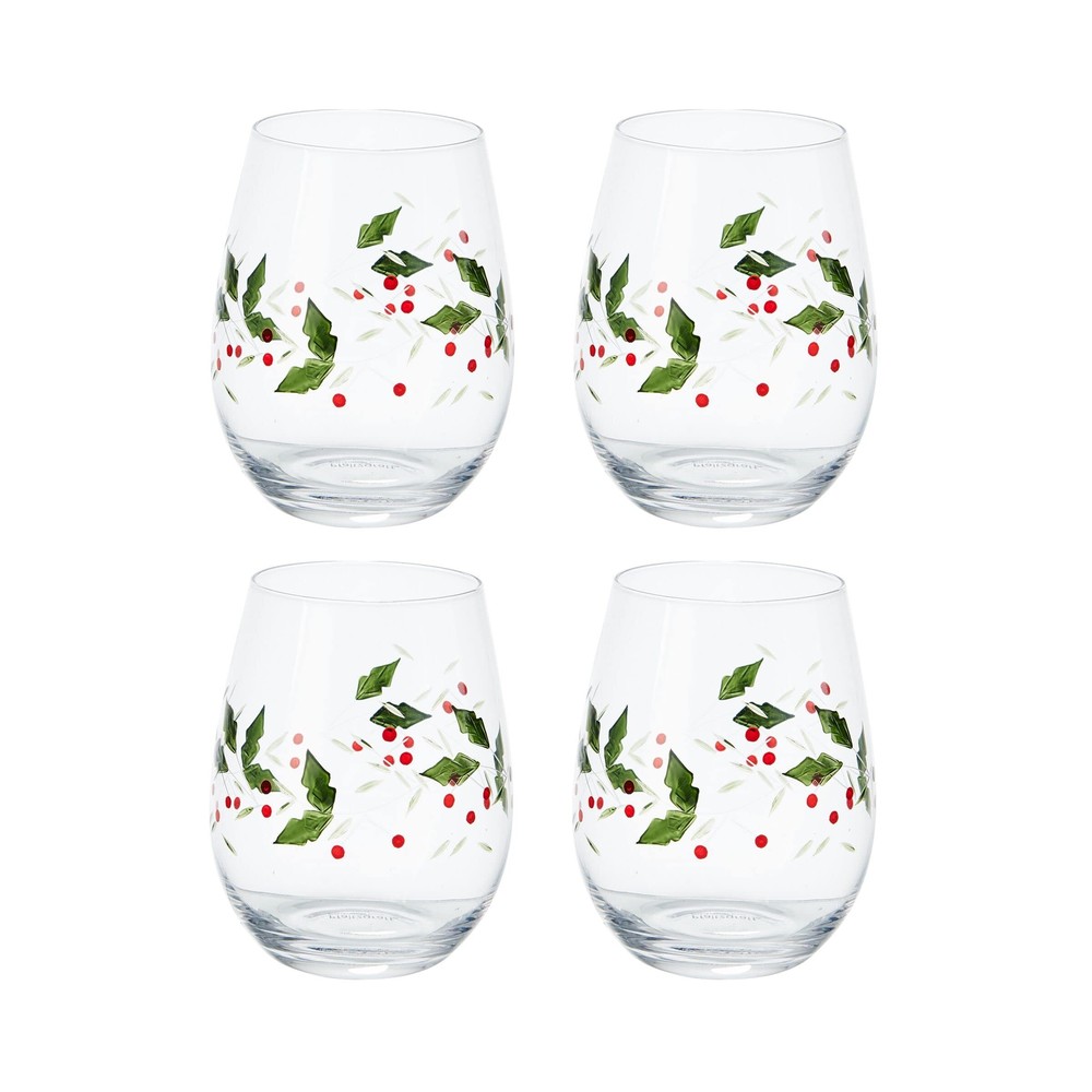 Set of 4 Winterberry Stemless Wine Glasses for Cozy Holidays