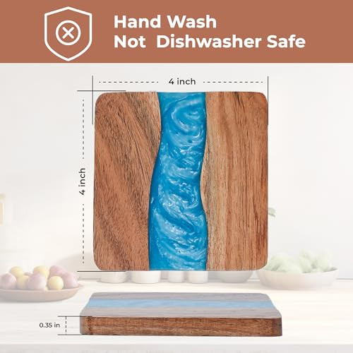 Return Policy Fast Delivery Trusted seller Wood Coasters with Resin - Set of 4 Cup Coasters with Holder - 4 x 4 Inches - Unique, Handmade, & Aesthetically Pleasing for Home, Office, Bar Decor - Modern, Rustic, Blue Coasters Product Description MODERN AND UNIQUE COASTERS: These wooden coasters for drinks are one of a kind, with a flowing resin river design that adds a touch of luxury to any coffee table or other surface that you want to protect. PERFECT GIFT: Whether for the holidays, birthday, wedding, house warming, Mother’s Day, Father’s Day, or any other occasion, the recipient is sure to love them and be mesmerized by the translucent epoxy resin design. And now you can check that person off your gift list! OPTIONAL NON-SLIP SILICONE FEET INCLUDED: The table coasters for drinks come with 16 anti-slip silicone feet that can be attached to the coasters to prevent them from sliding and scratching surfaces. HOWEVER, not all of our customers prefer the feet, so they are optional. If you would to add them, you must apply yourself. We apologize for any inconvenience, but want our customers to decide if the feet are used or not. Thank you HANDMADE WORK OF ART: Crafted with care, these wood resin decor coasters are not just functional, but visually pleg and zen-like. Each set of 4 is individually sealed to ensure a long life. PROTECT YOUR FURNITURE: Prevent rings and warping with these non-absorbent and easy to clean epoxy coasters. They're perfect for hot and cold drinks, and the size can handle any cup, glass, or bottle size at your home, office, or apartment. STYLISH COASTER SET: This coaster set with holder is made from acacia wood, and is a beautiful addition to any bar or kitchen. Plus, for every set sold, we partner with One Tree Planted to plant a tree. JUST THE RIGHT SIZE: Our drink coasters for tabletop protection measure 4” x 4” and are sealed to prevent them from absorbing liquids. They are perfectly sized for placing wine and bourbon glasses, beer pints, coffee cups, and more to help keep your table and countertops safe. REAL WOOD CRAFTMANSHIP: These coasters for wooden table are made with high-quality acacia wood and resin, creating a sleek and modern design that is both cool and peaceful. Shipping Returns Payment Shipping Shipping is FREE to all addresses other than APO/PO boxes in the lower 48 states. All our stock ships from US-based warehouses. Shipped via USPS or UPS (depending on location and package weight) Unless stated otherwise, all orders will ship within 24-72 hours of your payment being processed. Check our feedback to see the great reviews of FAST shipping we offer. Returns Seller does not accept returns Payment We currently accept payment via eBay managed payments only. Once payment is cleared, we will dispatch your shipment within 1-3 business days. Please refer to the "Shipping" tab for more information regarding shipping speed to your destination.