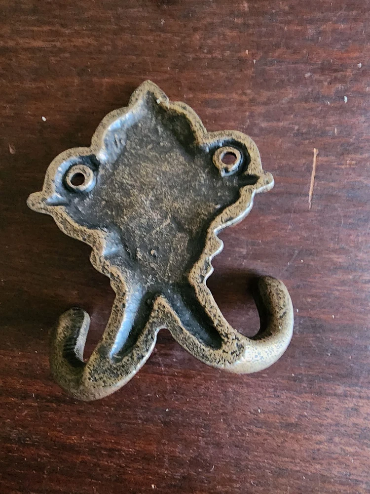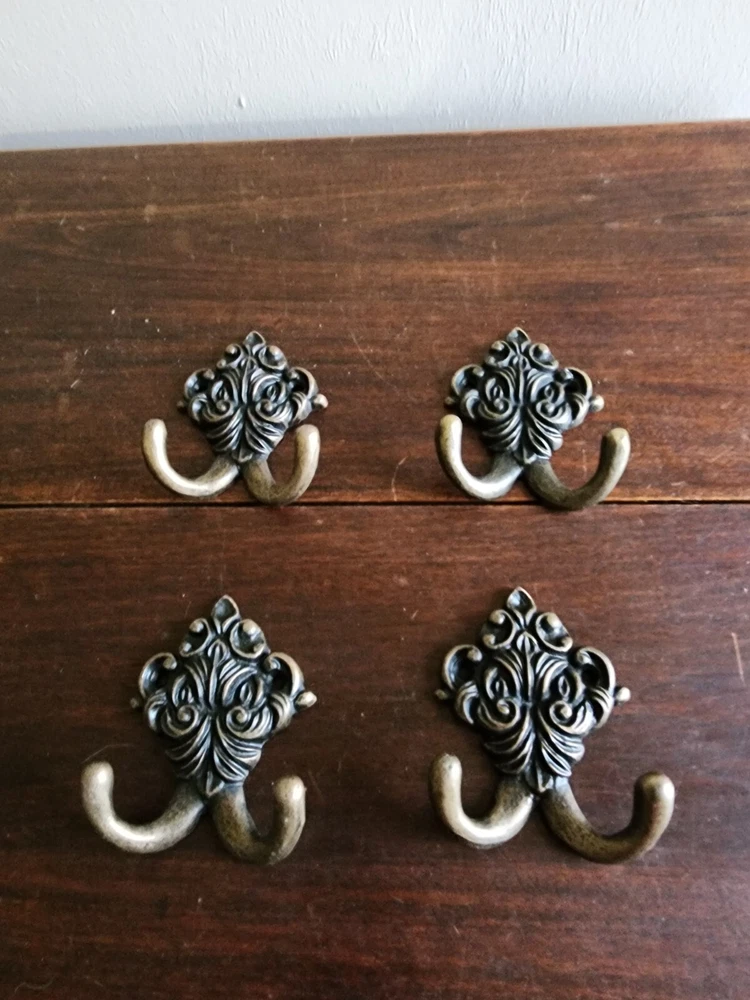 Set of 4 Wrought Iron Metal 2 Peg FLoral Wall Hanging Hook Coat/Towel Gold Tone