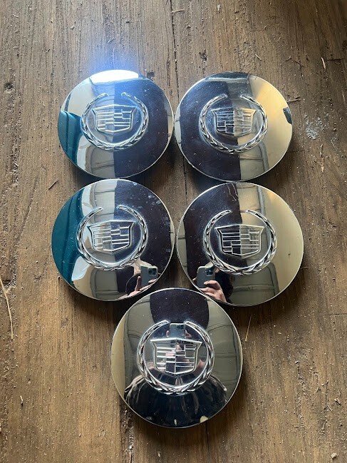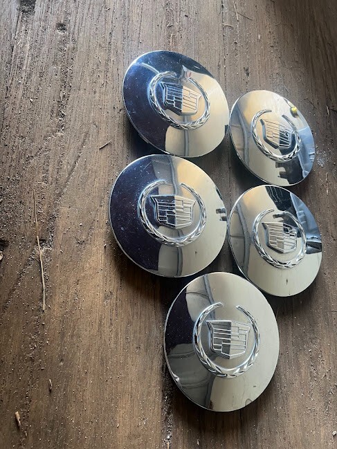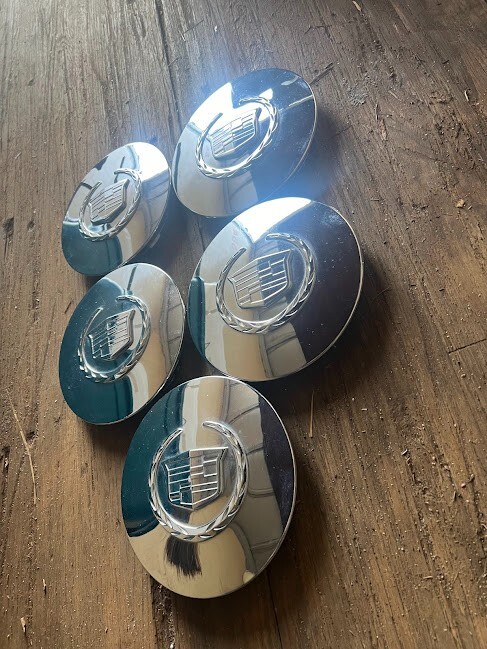Set of (5) Factory Cadillac Deville Center Caps in Chrome finish. Made of Plastic and Steel with an emblem type of Cadillac. They have an inside diameter of 5.75 inches and an outside diameter of 168 mm. Easy to install with no tools required, car wash safe, lightweight, and anti-fade protection. These center caps fit rear, left, front, and right placements on the vehicle. Part number 09594259, interchangeable with 9593259 and OEM part number 9594259.