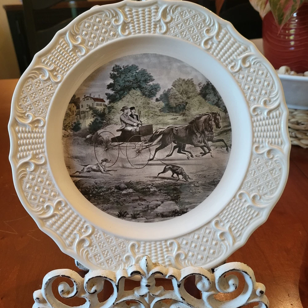 Vintage: Yes Type: Collector Plate Theme: Americana Pattern: Currier and Ives Brand: Delano Studios Country of Origin: United States Item Diameter: 10 in Occasion: All Occasions Shape: Round Color: White Material: Ceramic Character: Americana