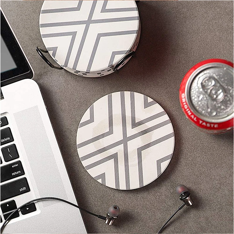 Set of 6 Ceramic Coasters with Holder Marble Drink Coffee Tea Cup Pad Mat Decor Package Included: 6 * Ceramic Coasters 1 * Coaster Holder Description: 1. The Great Gift's Choice Cool tones marbled pattern with 6pcs set, these funny coasters is great gift as housewarming and home decoration. 2. Coaster Holder Included Set of 6 marbled coasters come with a black metal coaster holder that neatly stack your coasters in this sleek coaster holder to save the space and keep them organized. The sleek coaster holder is made of ferrous metal, resistant to pollution and scratch. 3. Strong Water Absorption Ceramic Made of natural cork cornerstone absorbing ceramics, absorbant ceramic top helps to capture moisture in cold or hot drinks. Also doesn't stick your glasses and keep it dry, protect cups or mugs surfaces and easy to clean. 4. Non-Slip Cork Base The cork bottom of the coaster is an environmentally friendly cork base that prevents slipping and keeps the coasters in place. Non-slip feature will not slip even on a smooth table, also protects your furniture or tabletops from scratches or scuffs. 5. Suitable Size 4 inch(100mm) diameter size drink coasters suitable for most commercial type of cups, coffee cups, bowls, kids' drinks, sports bottles, craft cocktails and tumblers. A great accessory for your home, kitchen, living room, bar, wodden table, etc. Little Tips: If coffee or dark drink splashed on the coaster, we recommend you to wash the coaster with water immediately. Specification: - Coaster Size: 4.13" (diameter) x 0.27" (thickness) / 10.5 cm x 0.7 cm - Packing: Bubble Bag Inside + White Box Outside - Packing Size: 4.8" x 4.8" x 2.6" / 12.2 cm x 12.2 cm x 6.8 cm - Packing Weight: 1.4 lb / 630g Note: -Due to manual measurement, there will be an error of +/- 5 mm. -Due to the shooting angle and the display, the goods may have a color difference from the picture. Guarantee • Fast & Free Shipping on ALL Orders We believe that you should enjoy the benefit of FREE Shipping on all of your orders within the all Continental States. That's why no matter what you buy, we will ship it for FREE, so the price you see is exactly what you pay. No hidden fees or shipping charges. • Most Items Delivered in 2-6 Business Days When you're buying from us, you deserve fast and reliable service. That's why we have a "Same Business Day" processing in place and wide range of shipping options to choose from in order to deliver your package as soon as possible. *2-6 business days time-frame is NOT GUARANTEED and was statistically calculated based on all previous orders. • ALL Orders Placed On Business Days Before 4 PM EST Will Be Shipped Same Day Why wait a day or more for your order to ship? All orders placed before 4 pm EST, Monday-Friday, ship the SAME day. Orders placed on Friday after 4 pm EST, Saturday and Sunday will be shipped the next Monday (if business day). We are closed on all Federal Holidays. • 30 Days Money Back Guaranteed! We will gladly accept your return within 30 days of the original purchase. Please, see below for our full Returns Policy. Shipping Details • Most orders arrive at your door in 2-6 Business Days FOR FREE! • Place your order before 4 pm EST and it will be shipped the same day, Monday – Friday, excluding major holidays. • We will ship your order to your PayPal Verified address provided. • Please verify your address and make sure that it is your current address before making your payment. Any address change requests after your payment CANNOT be guaranteed. • We do not include invoice with our shipments. Feedback • Positive feedback is automatically done once your order is shipped. • We appreciate all our customers to post a Positive Feedback and "Five-Star" scores. • If for any reason you are not satisfied with your purchase. Please contact us via eBay Message and We will do our best to satisfy you! Payment & Order Cancellation • Instant PayPal payment is required. • We also accepts Visa, MasterCard, Discover, and American Express through PayPal guest checkout. • Sales tax is charged for California State orders. • To uphold a shipping speed, your order will be processed almost immediately. If you change your mind after your payment is confirmed, we will do our best to stop the order, however, we CANNOT guarantee the cancellation. Returns • We will gladly accept your return within 30-Days of the original purchase. • Our return process is simple and fast: 1. We will pay for the return shipping label if you received a broken/defective item(s) or the item(s) doesn't match our description. As soon as we receive the item(s) back we will process a refund for the item(s)which was/were returned. 2. You will be required to pay for the return shipping label if you changed your mind or no longer need the item(s). As soon as we receive the item(s) back we will process a refund for the item(s) which was/were returned. • If we'll receive a package back because of the incorrect address, the refund will be processed excluding our shipping cost. Contact Us • Send us a message on eBay and we will answer within 24h on business days.
