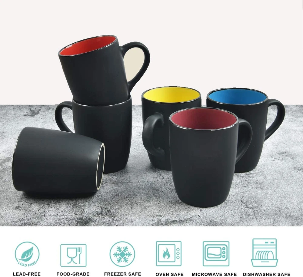 Built-In Media: Handle Capacity: 16 ounces Theme: Colorful Material Type: Ceramic Shape: Round Package Type: Specialized packaging (with thick foam and outer box) Unit Count: 6 Count Specific Uses For Product: Hot Drinks Material Type Free: Lead Free Brand: Does not apply Color: Does not apply Item Dimensions W x H: 3.6"W x 4.4"H Item Weight: 5.98 Pounds gtin13: 744759320865 Additional Features: microwave_safe, freezer_safe, break_resistant, Microwave Safe Pattern: Solid Recommended Uses For Product: Home Style: Modern Age Range Description: Adult Special Feature: microwave_safe, freezer_safe, break_resistant, Microwave Safe Product Care Instructions: Machine Wash, Hand Wash Only Type: Does not apply UPC: 744759320865 Material Ceramic: Capacity 16 ounces Number of Items: 6 Material Features: Heat Resistant, Break-resistant Style Name: Modern Occasion: Daily Finish Types: Matte Occasion Daily: Item Weight 5.98 Pounds Reusability: Reusable
