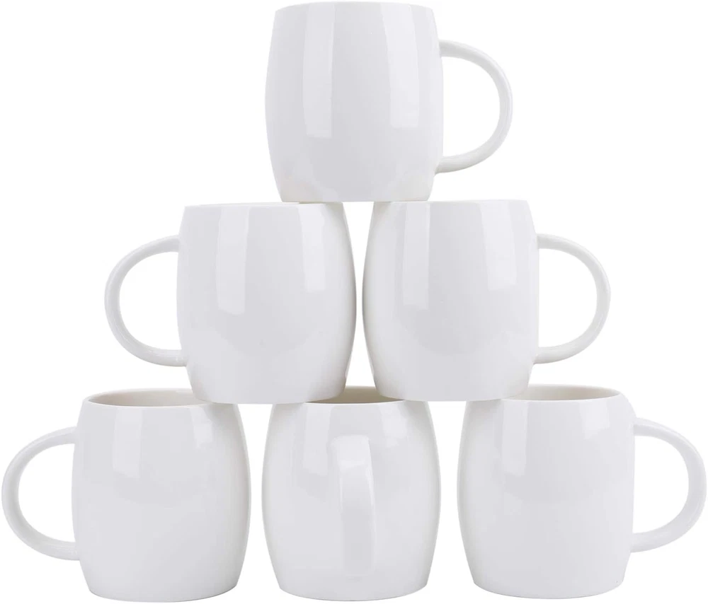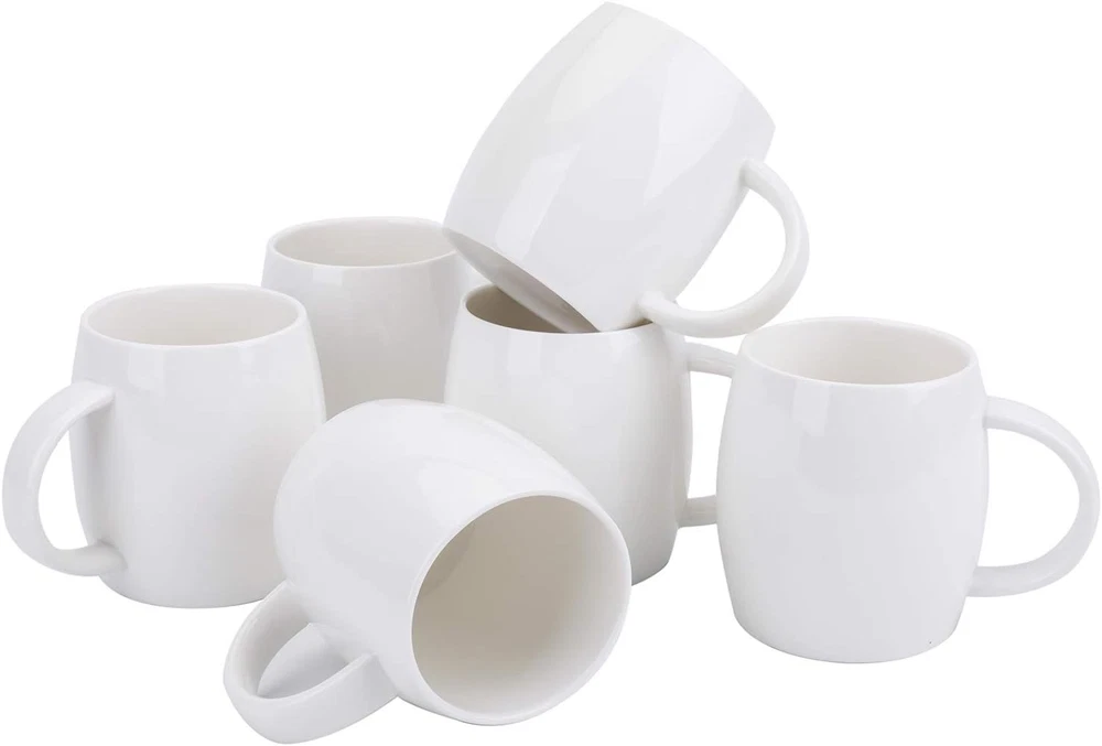 Set of 6 Porcelain Mugs 15 Ounces White Coffee Mugs Set Ceramic Drinking Cups fo