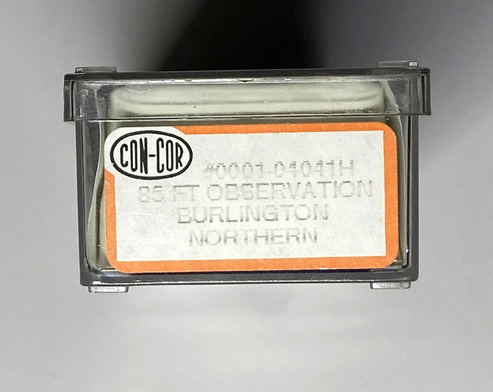 Set of Four (4) Con-Cor N Scale Burlington Northern Passengers cars, new in their original boxes. One (1) #0001-04001H - 85 ft Coach Car One (1) #0001-04011H - 85 ft Pullman Car One (1) #0001-04021H - 85 ft RPO/Baggage Car One (1) #0001-04041H - 85 ft Observation Car