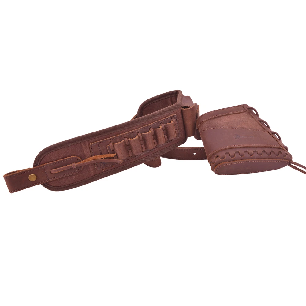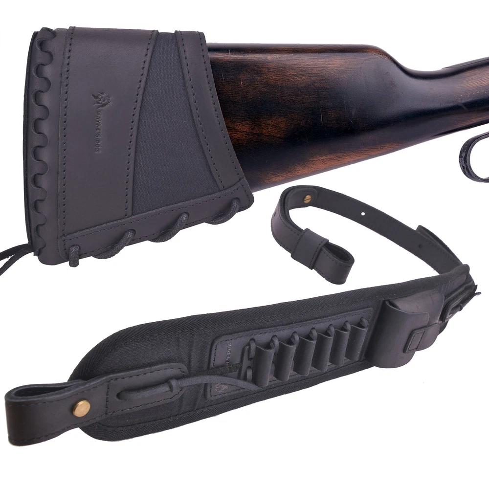 Gun Recoil Pad 【Material】This rifle butt pad is made of high-quality double-layer oil wax canvas and cowhide Leather, heavy-duty stitching and durable. 【Butt Pad size】5 ½" x 4" x 1 ¾”. 【Ergonomic Buttstock】The edge of the gun buttstock that contacted with the shoulder is rounded to perfect fit with your shoulders. 【Comfortable Shoulder Pad】Provided 4 pieces neoprene inner cushions to help reduce risk of injury or pain associated with gun recoil and shock. 【Easy to Use】This leather shooting pad works for wooden & synthetic stocks and seamlessly fits over the buttstock of any rifle or shotgun without modifications. 【Waxed Canvas String】Some customers reflect that the leather string of the buttstock is easy to break during installation, so we change to dia 5mm Oil Waxed string, which is easier to tye and duarable. Gun Sling 【Material】Made of buffalo hide leather and waxed canvas inner cushion for non-slip, heavy-duty stitching and durable. 【Fit 1" Swivels】Our shell holder sling can be adjustable from 33.5" to 41.5". (Both ends of the shoulder strap are 1 inch wide, suitable for most rifle swivels.) 【Caliber .308 .30-06 .45-70】Fit for .308 .40-65 .45-70 .22-250 .30-06 .300WIN, .40-40 .40-60 .40-65 .40-70 .44mag, .45 Long Colt, 7MM REM 6.8 SPC and .410 shotgun bullets as well. 【Caliber .357 .30-30 .38】Fit for .357, .30-30, .38 .32Win Spcl.32-40. 【Caliber .22lr .22mag .17hmr】Made for .22, .22LR, .22MAG, .17 hmr Cartridge Holder. 【12GA Shell holder Shotgun Sling 】:This sling is specially made for bullet models such as 12 Guage.Note that 20GA and 16GA are not available. 【16GA Shell holder Shotgun Sling 】:This sling is specially made for bullet models such as 16 Guage. 【20GA Shell holder Shotgun Sling 】:This sling is specially made for bullet models such as 20 Guage. 【Package include】1pcs Padded Leather ammo holder sling.