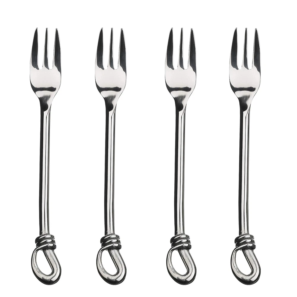Offered is a set of four cocktail forks in the Twist pattern by Settings. Each cocktail fork measures 5 1/2" in length. Crafted of High Quality 18/10 Stainless Steel. Dishwasher Safe. Set of Four - Cocktail Forks Each cocktail fork measures 5 1/2" in length. Crafted of High Quality 18/10 Stainless Steel Dishwasher Safe