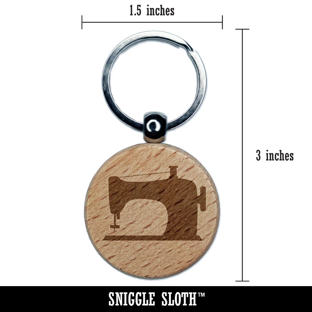 Sewing Machine Silhouette Engraved Wood Round Keychain Tag Charm