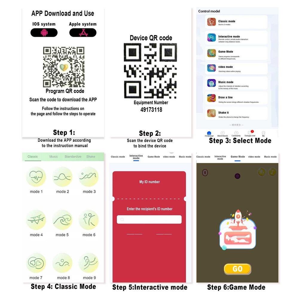 G uarantee 100% discreet shipping on the package and no wirtting on package. Features: ✅ Intelligent applicati on control: The device connects to the application via Bluetooth and is compatible with iOS and Android. This application has multiple playback modes. In addition, it can also be controlled through the power button. ✅9-frequency vibration, single-switch operation.1.5s press for on/off, short press to switch frequency. Controlled via Muser APP. ✅ Product light : LED flashing with frequency, charging uniform speed flashing, full of long bright. ✅ Waterproof & DC Charging: The vibration dildo, clitoral stimulator is waterproof, you can simply clean the vibrators under the flowing water. Product information : Vibrator Material: Silicone+ABS Product size : Total length:11cmcm/4.33in Dildo length:9.2cm/3.62in Chassis length:9.3cm/3.66in Chassis Wideth:2.8cm/1.11in Mute level:≤ 50dB Rated voltage : 3.7V Charging voltage: 5VDC Charging current :330mA Charging time: 60minutes Duration : 65minutes Package included: 1X Anal Plug 1X Cable 1X User Manual Functional Operation instruction: 1.Long press the power buton for 1.5 seconds to enter the standby mode, the light turn on. 2.Short press the power button to active and cycle through the vibration function function, in total of 9 speeds. 3.To use the APP control, the toy must be powered on. ( The details to check the APP Connection manuaI). 4.Long press the power button for 1.5 seconds to turn off the toy. the light turn off. Download the APP, please scan the QR code , after the download and registration, click the homepage to add the device, scan the device binding code, then to enjoy it.Enter the device binding code manually 4274.