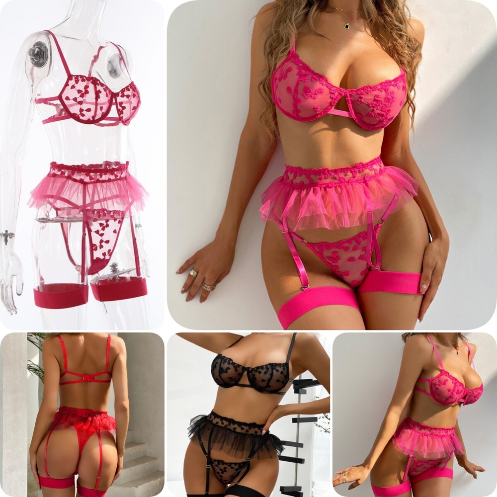 95% Polyester, 5% Spandex Imported Hook and Eye closure Push Up Underwired Bra Top Hand Wash Only Underwired lingerie set,Bra Thong with garter belts lingerie for women,lingerie set for women,lace bra and panty sets for women,Three piece lingerie for women,lace lingerie set,wedding lingerie for bride Lace lingerie set is made of 95% polyester and 5% spandex,soft and comfortable to wear! Prefect for showing off curves. The bra and panty set are feature with lace cups with underwire and thong bottom,adjustable spaghetti shoulder strap,gater belts sheer mesh which makes you more attractive. Perfect for honeymoon night, wedding nights, lingerie party, anniversaries, valentine's day, bedroom, sleeping, bathing, or special nights, It will make you more elegant and stunning Package Content: 1x sexy lingerie