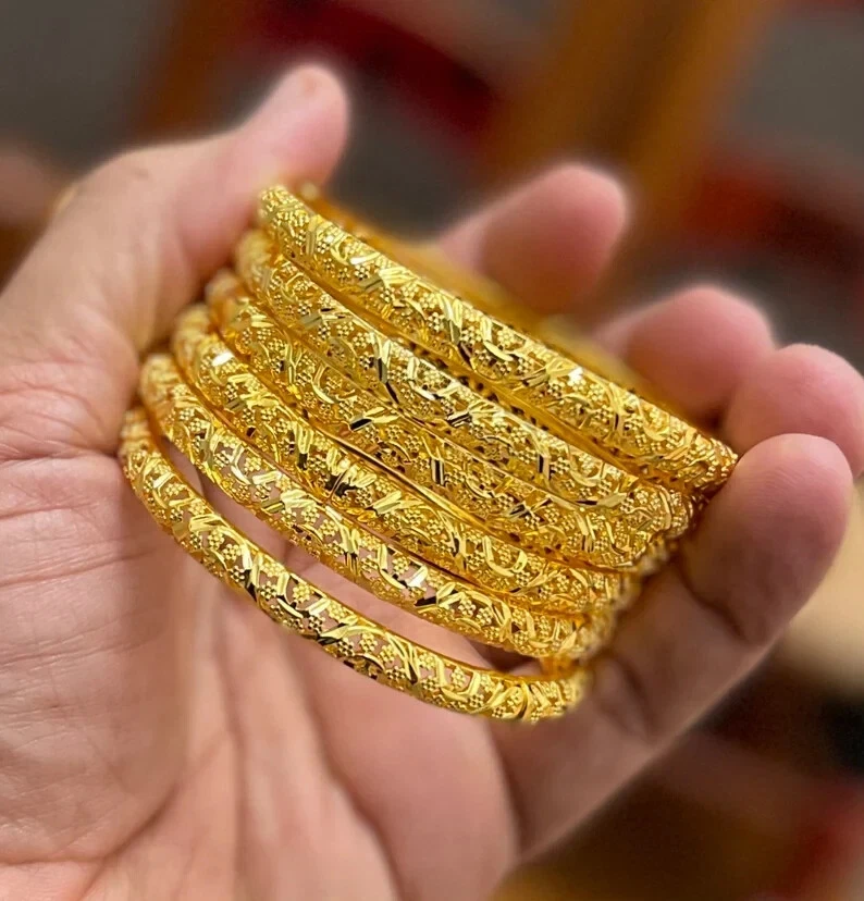 Gold Color Bangles For Arabic Middle East African Women And Girls Jewelry Gift Set of 4 Metals Type: Copper Origin: HK(Origin) Bracelets Type: Cuff Bracelet Style: Classic Fine or Fashion: Fashion Material: Metal Compatibility: All Compatible Function: Period Tracker Setting Type: None Shape\pattern: Geometric Plating: Gold Color Plated Package 4 pcs