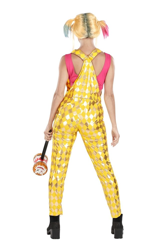 Character: Harley Quinn Material: Mixed Materials Holiday Celebrations: Halloween Production Year: 2020 Color: Gold Size Type: Regular Features: MAKE A STATEMENT: This fun costume is inspired by Harley's beatin, Birds of Prey. Apparel Theme: Superheroes Age Group: Adult