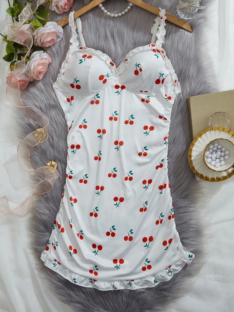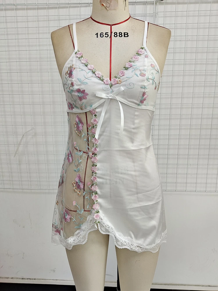 F eature : This Sling full slip sleep dress super soft, comfortable, and breathable to wear. V-neck design and cute pattern inspire sultry flirtation and showcase your true beauty. The slim fit design can outline the charming figure curv e, sexy plunging V-neck and bust push-up for a great figure look. This cute pajamas dress is perfect for Christmas party, Valentine’s Day, date nights, wedding nights, honeymoon nights and lingerie party. Color: White/Black/Orange/Red/Pink/White Size:S-XL Packaging includes : 1× sexy lingerie dress(without panty)