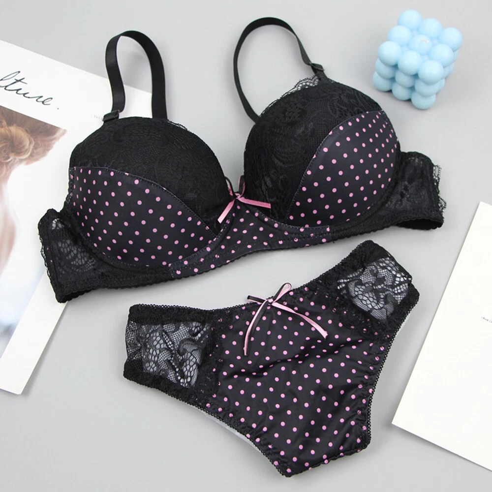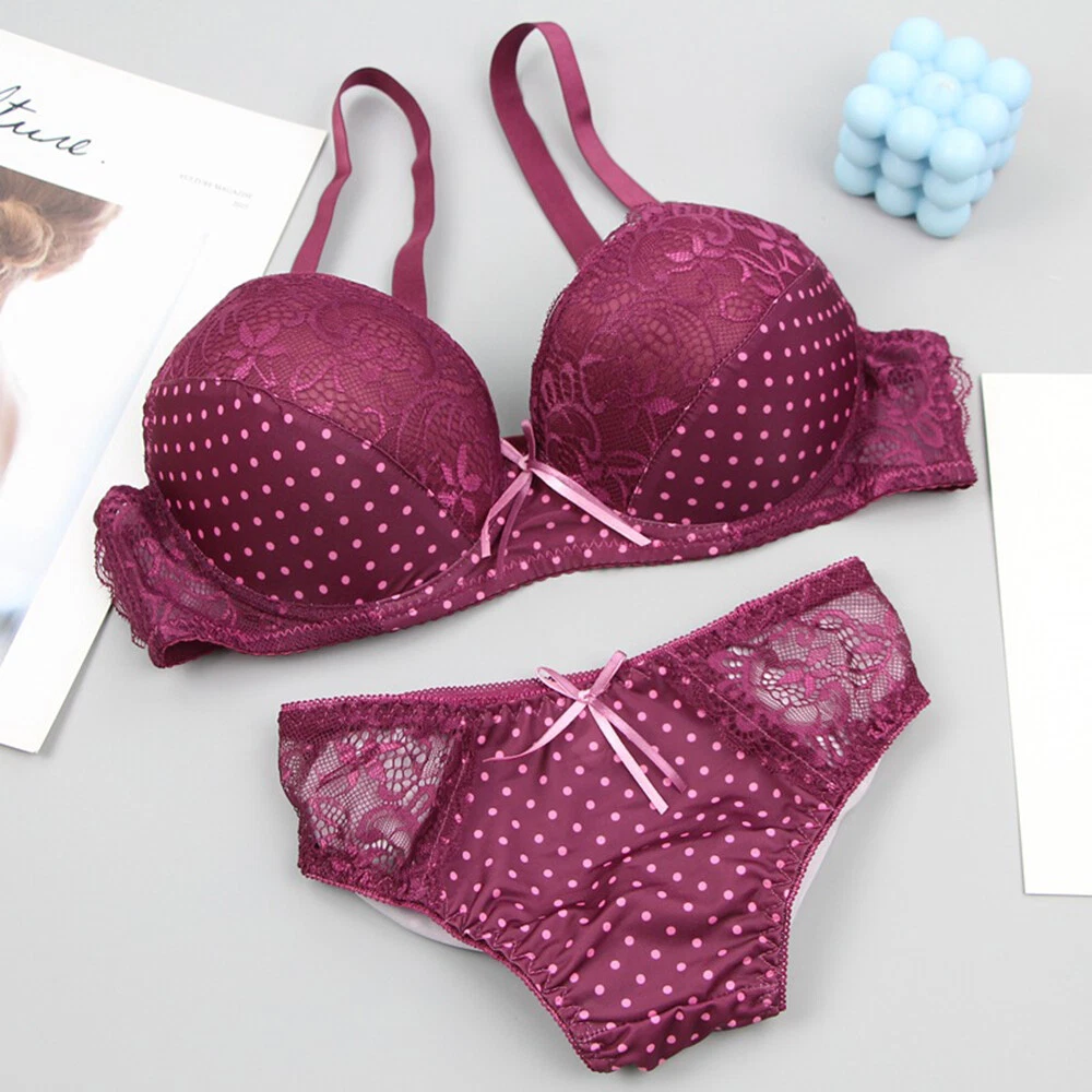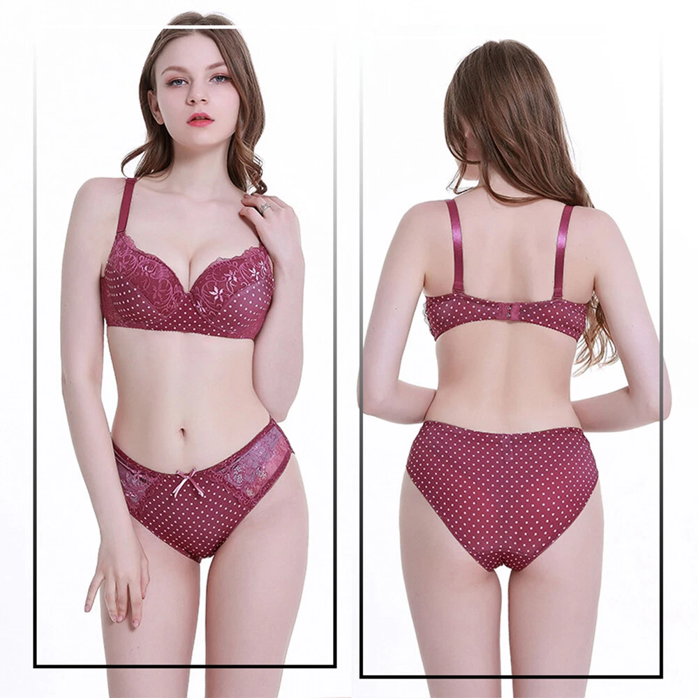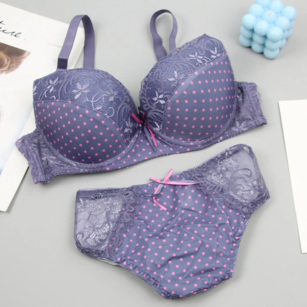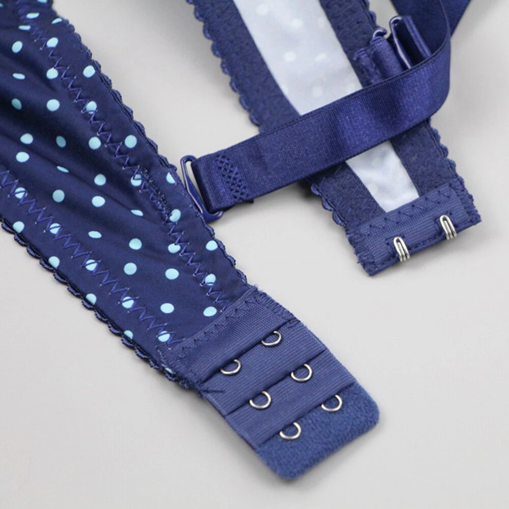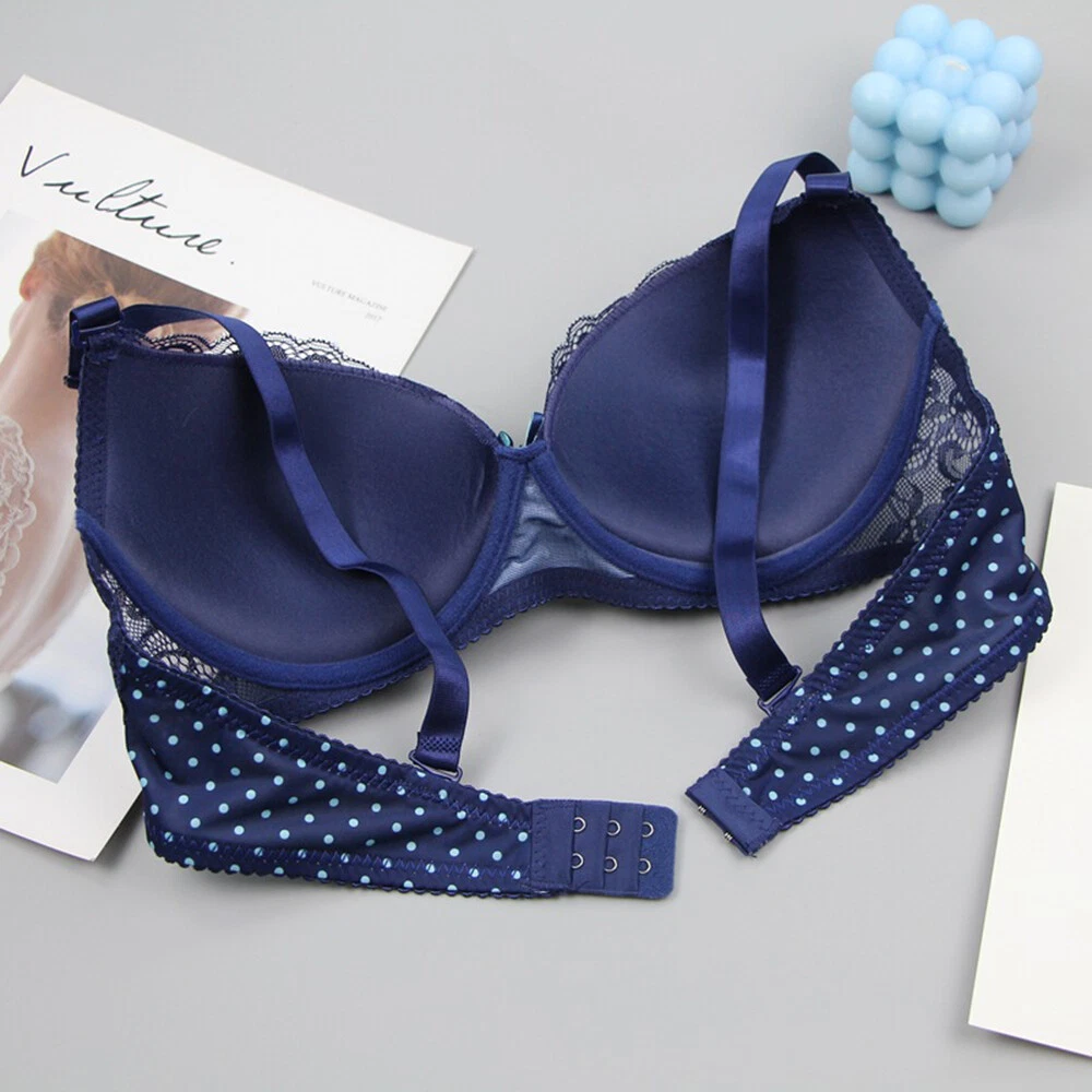 Features: Adjustable Strap, Buckle, Comfort Straps, Padded, Push Up, Seamless, V-Neck, Washable Pattern: Polka Dot Size Type: Plus Accents: Buckle, Embroidered, Lace Type: Bra Set Cup Size: C Country/Region of Manufacture: China Brand: Unbranded Material: Cotton, Nylon, Polyester Underwire Type: Underwired Closure: Buckle Theme: Boho, Classic Department: Women Fabric Type: Lace Band Size: 40 Style: Push Up Bra Personalize: Yes Opacity: Opaque Strap Type: Bra Strap Garment Care: Hand Wash Only