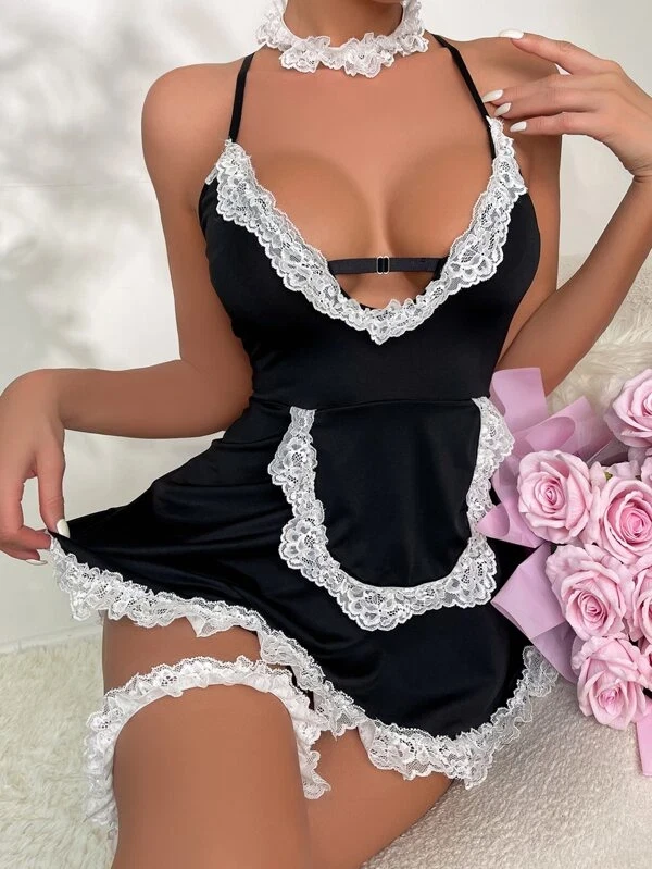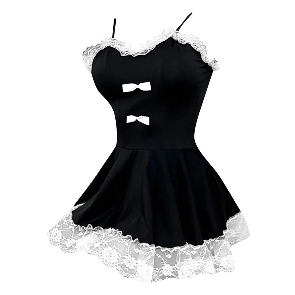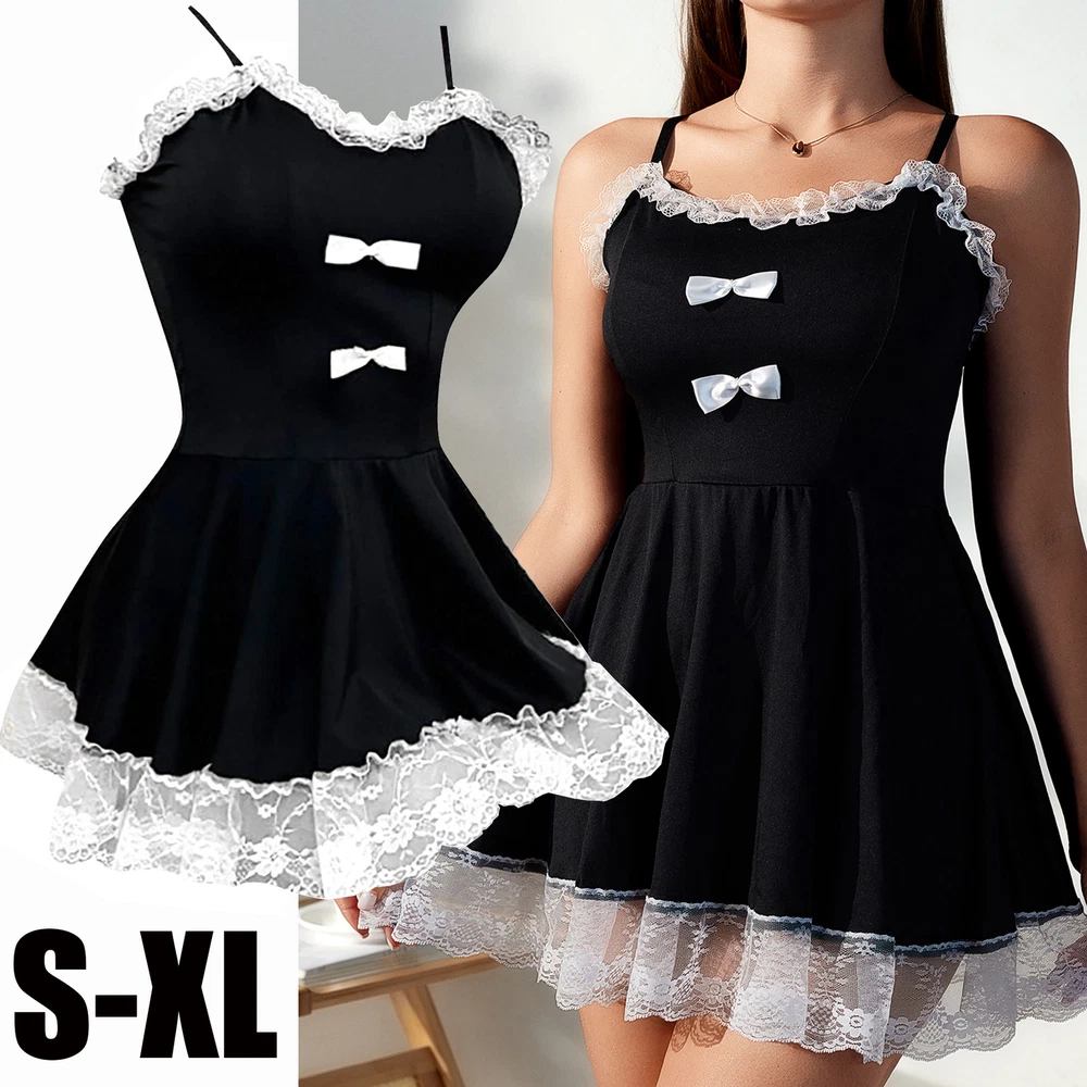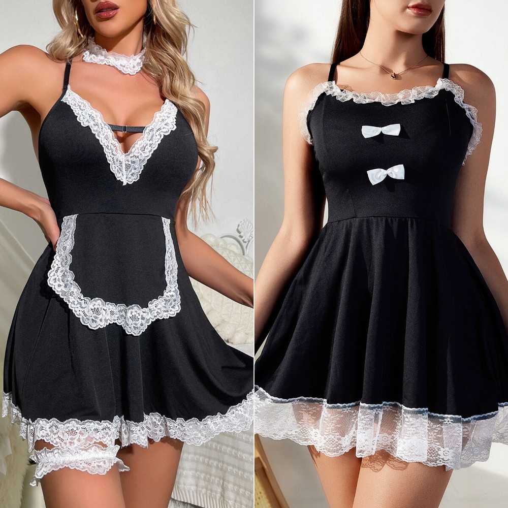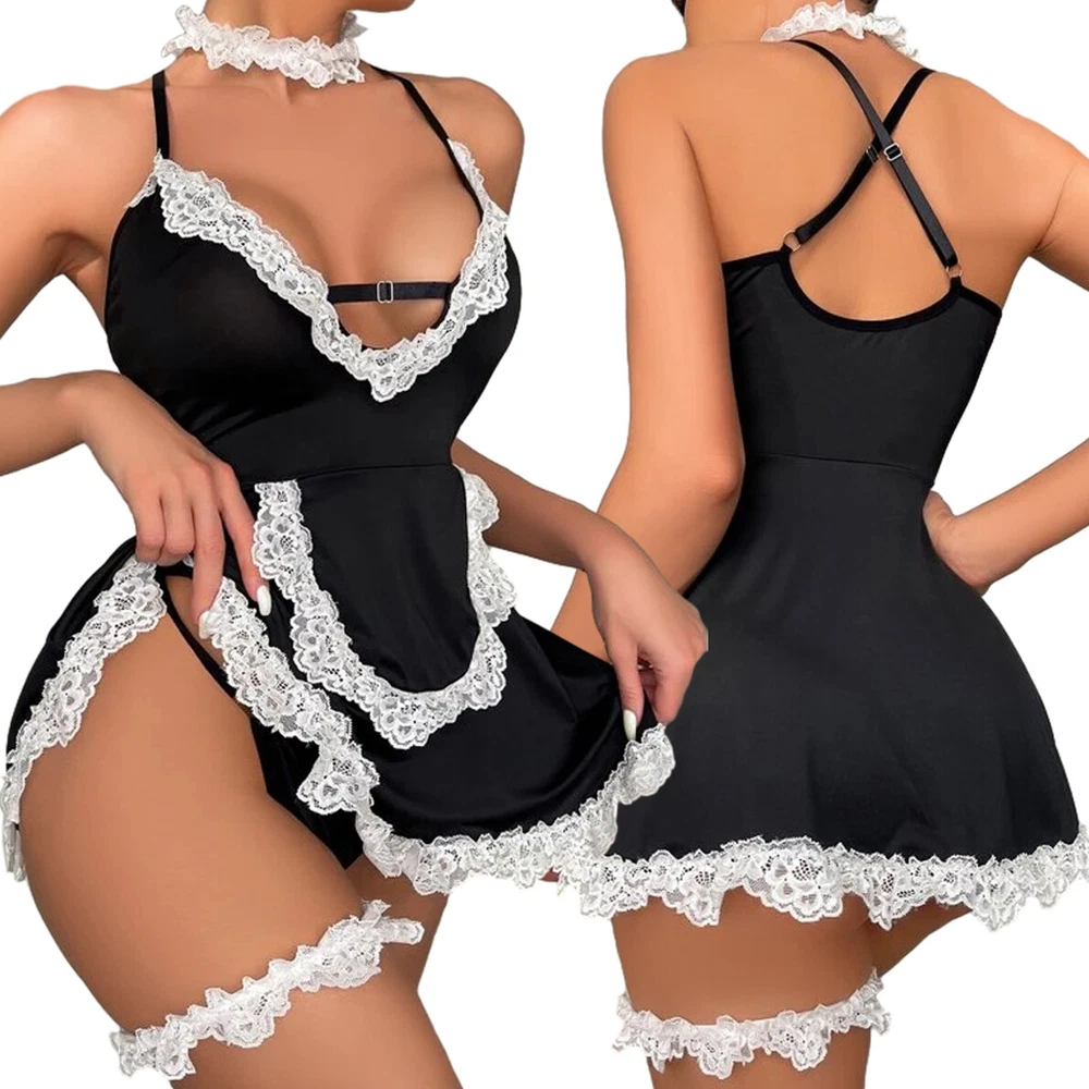Sexy Lingerie Set Maid Costume Babydoll Teddy Nightwear Schoolgirl Dress