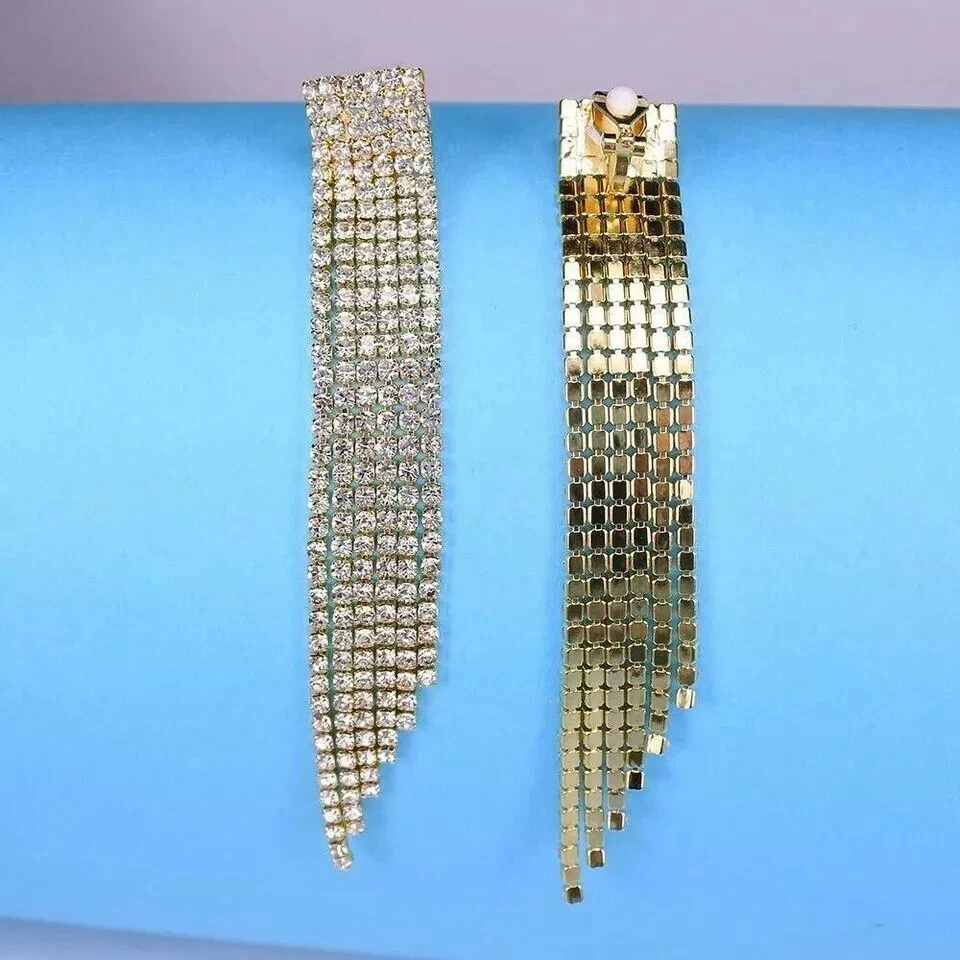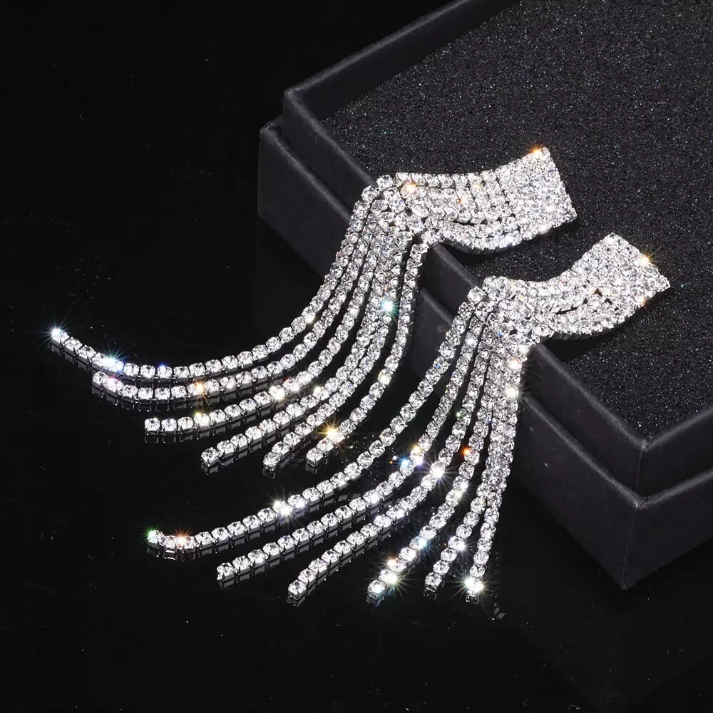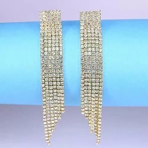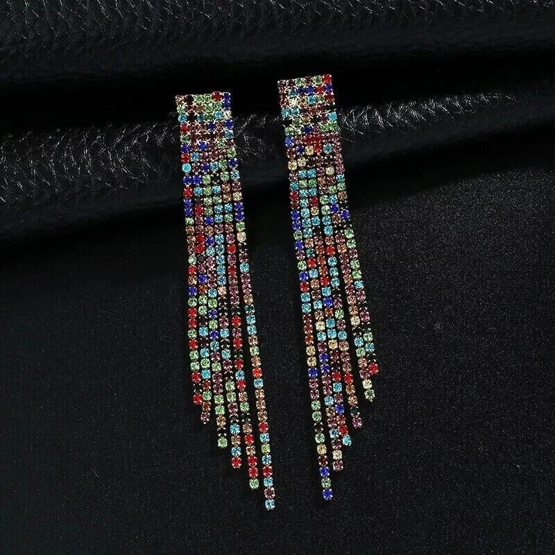 Earrings Women Rhinestone Crystal Long Tassel Bridal Drop Dangling Gift Earring Type: Drop Earrings Item Type: Earrings Fine or Fashion: Fashion Style: Trendy Metals Type: zinc Alloy Shape\pattern: Water Drop Gender: Women Material: zinc Alloy Model Number: WX006 Occasions: Wedding/Party / Prom / Anniversary Color: Gold/Silver/Multi-Color Gift for: Mom / Girlfriend / Wife / Daughter / Female friend Weight: 14g Package: Bubble envelope Notes: Due to the light and screen setting difference, the item's color may be slightly different from the pictures. Please allow slight dimension difference due to different manual measurement. Package Includes: 1 Pair of Earrings