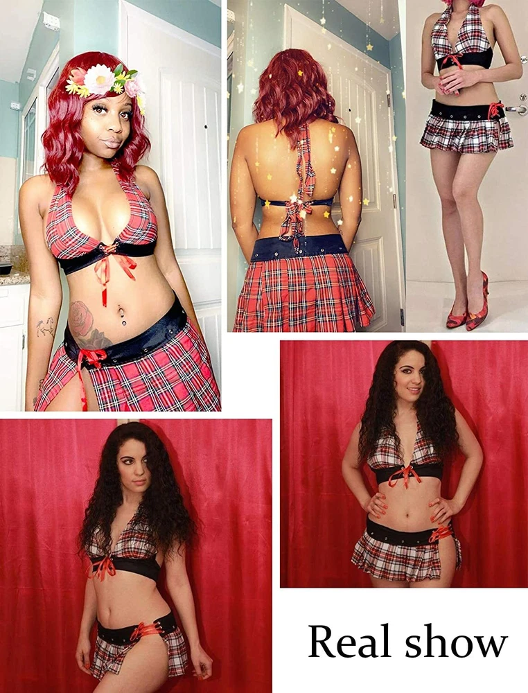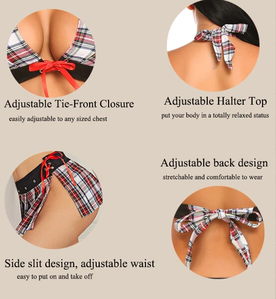 Garment Care: Machine Washable, Cold wash recommended MPN: Does not apply Brand: Unbranded Style-2: Sexy Material: Poly/Cotton Character: School, Schoolgirl Season: Fall, Spring, Summer, Winter Pattern: Geometric Size Type: Regular Closure: Halter Occasion: Sexy School Girl Costume Sleeve Length: Sleeveless Style: Lingerie Features: Elastic/Stretch Theme: School Girl,Dating,Birthday,Best Gift for her