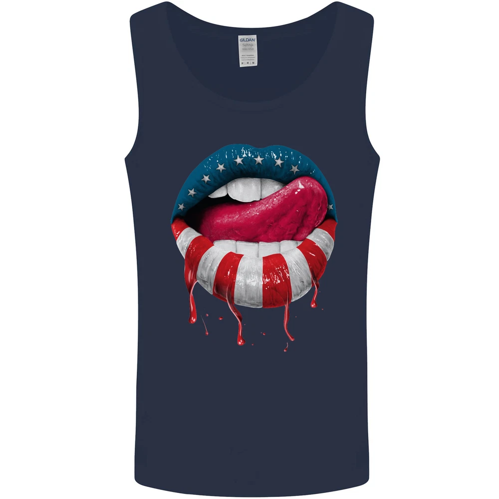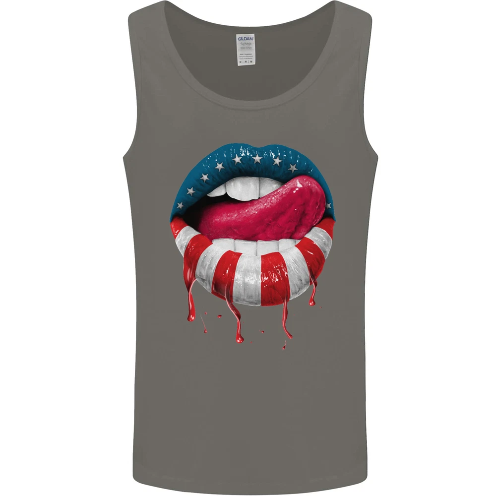 Sexy USA Flag Lips America July 4th Mens Vest Tank Top