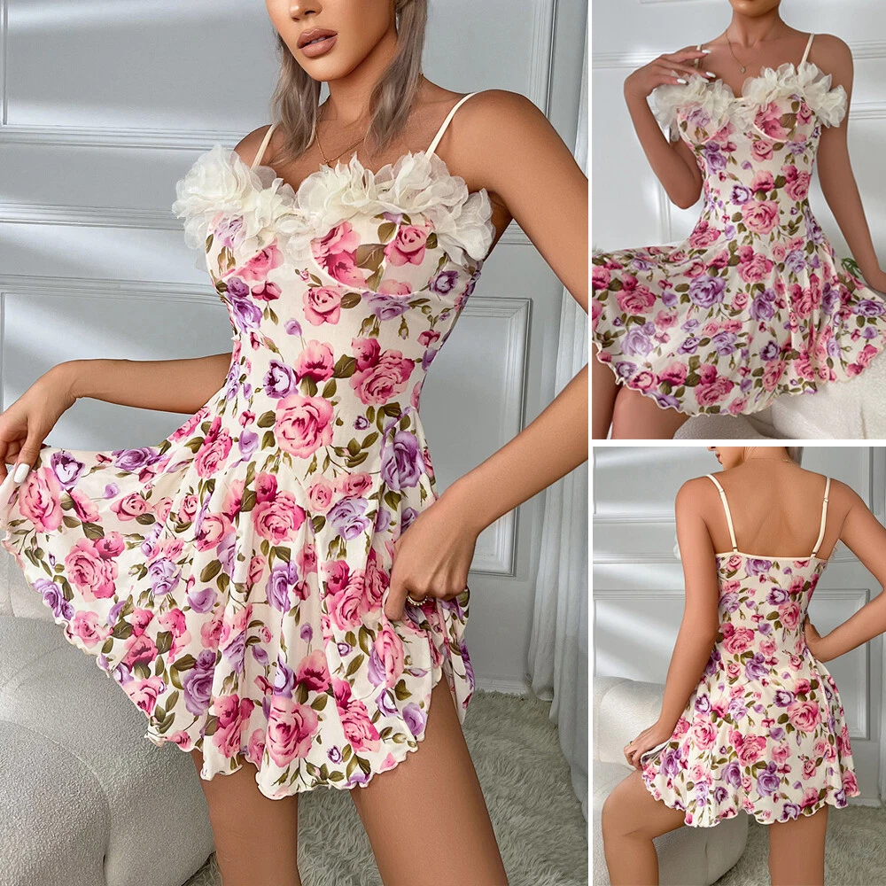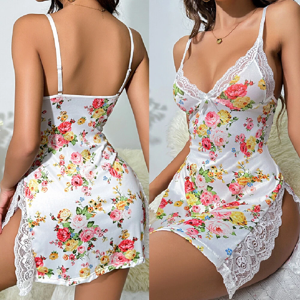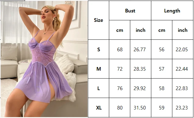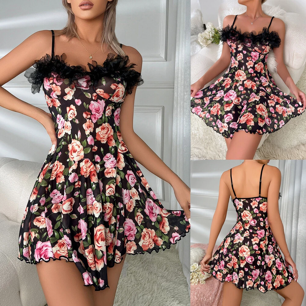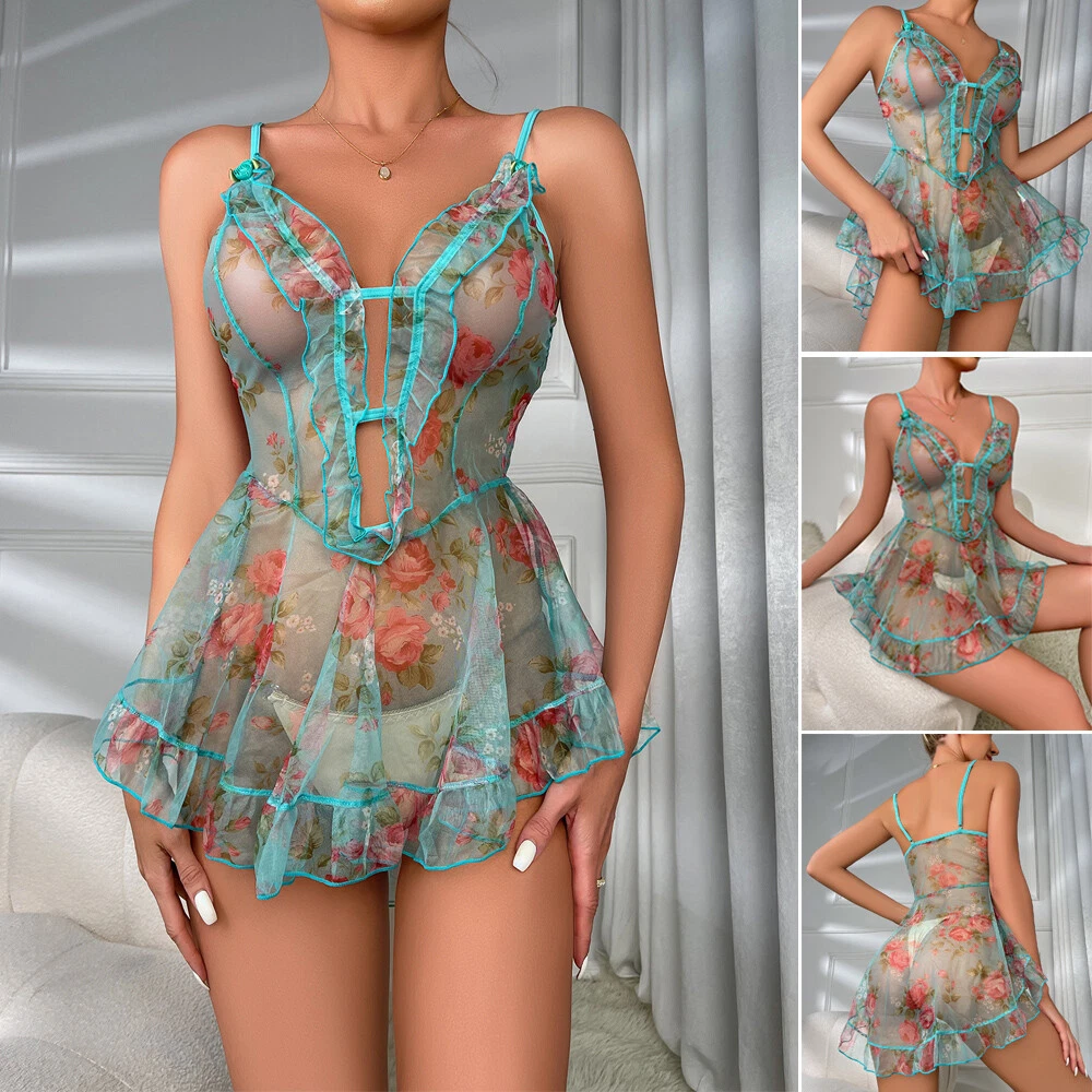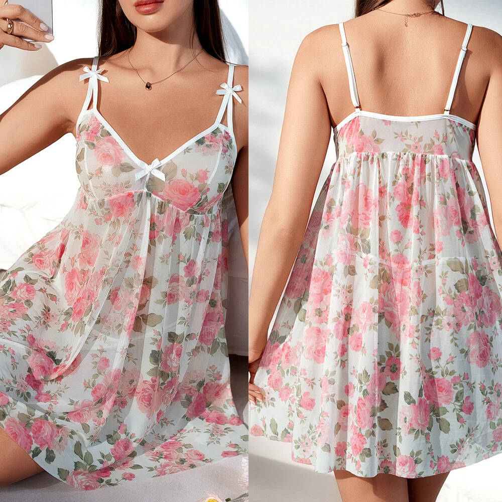 Sexy V-Neck Lace Babydoll Sleepdress for Women – Sleeveless & Sheer